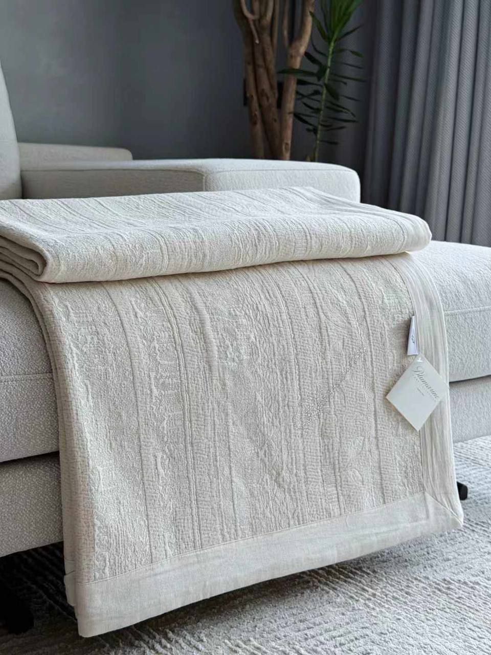 Покрывало Blumarine — элегантное изделие, выполненное в светлых тонах, идеально подходящее для создания уютной атмосферы в вашем доме. Его текстурированная поверхность и сдержанный дизайн добавят изысканности любому интерьеру.