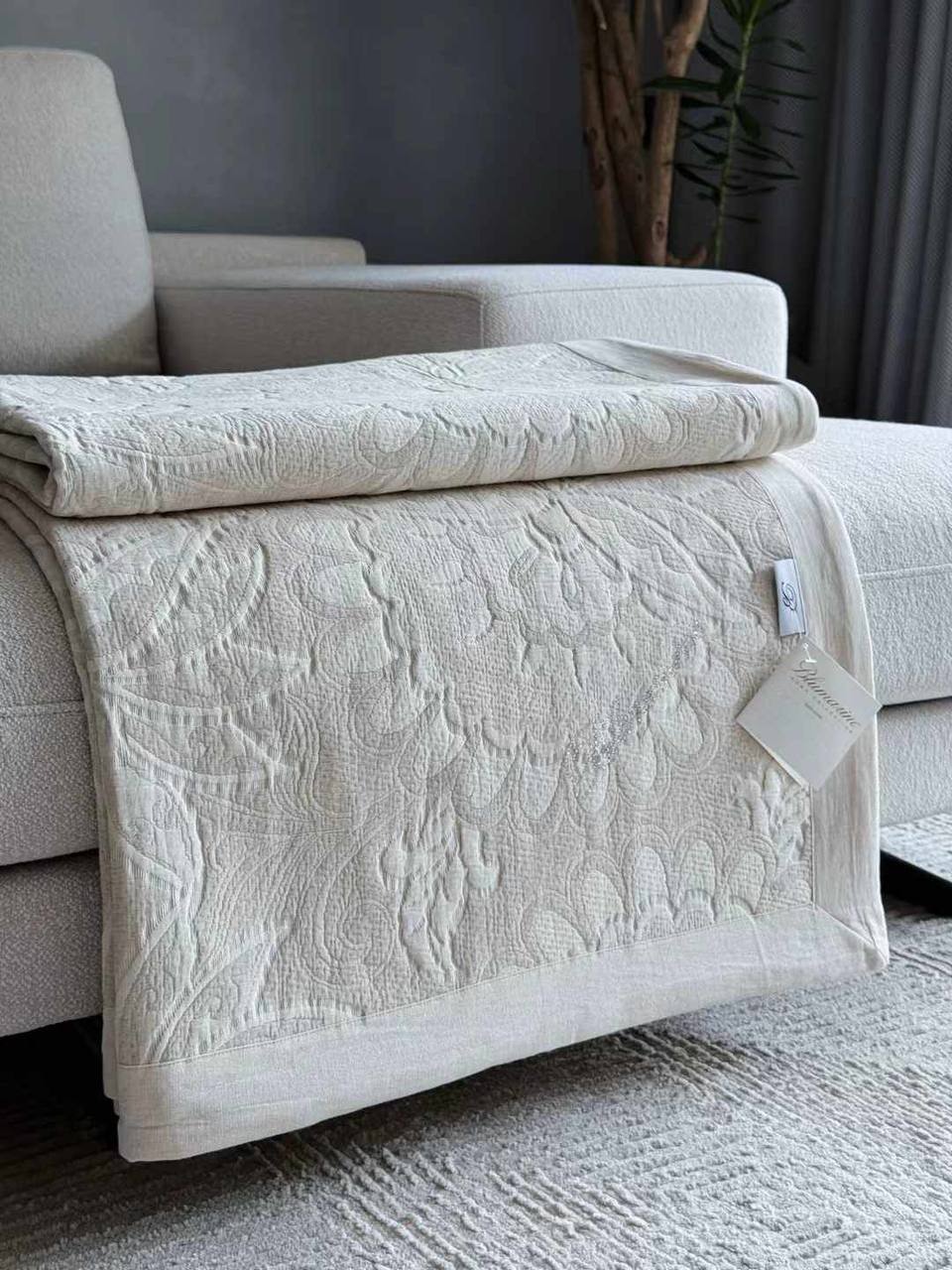 Покрывало Blumarine – это элегантное изделие, выполненное в нежном бежевом цвете с изысканным рельефным узором. Оно идеально дополнит любой интерьер, добавив ему нотку роскоши и уюта.