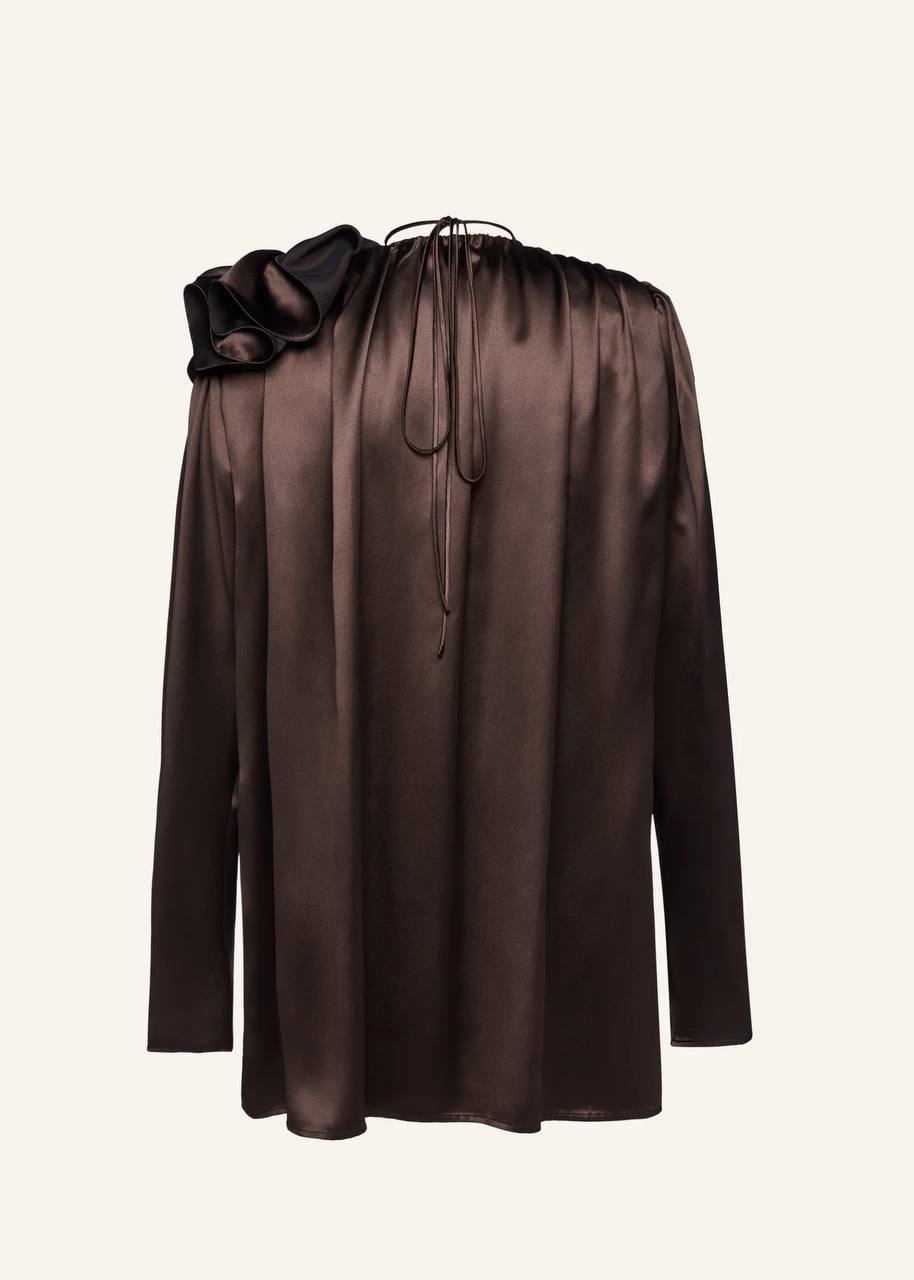 Блузка Magda Butrym (LUX-117967) выполнена в элегантном стиле и отличается однотонным дизайном. Темно-коричневый цвет блузки придает образу изысканность, а атласная текстура добавляет нотку роскоши. Эта блузка отлично подойдет для создания стильных образов на различные мероприятия.