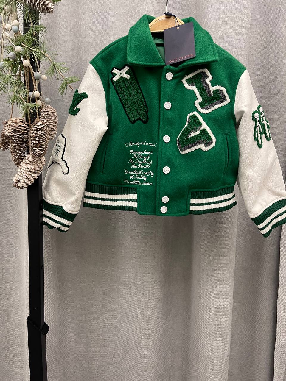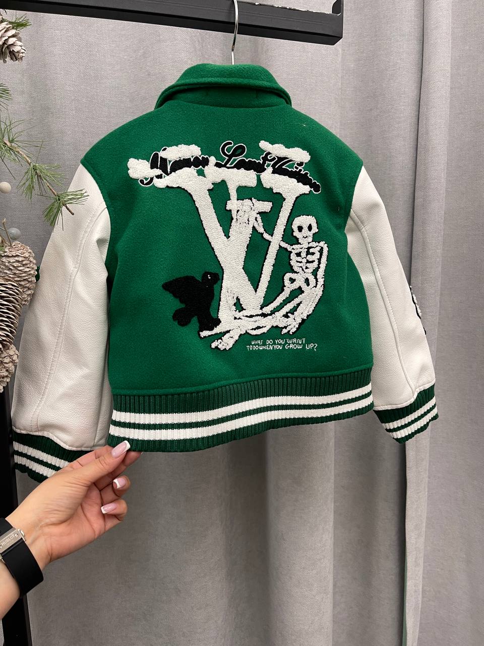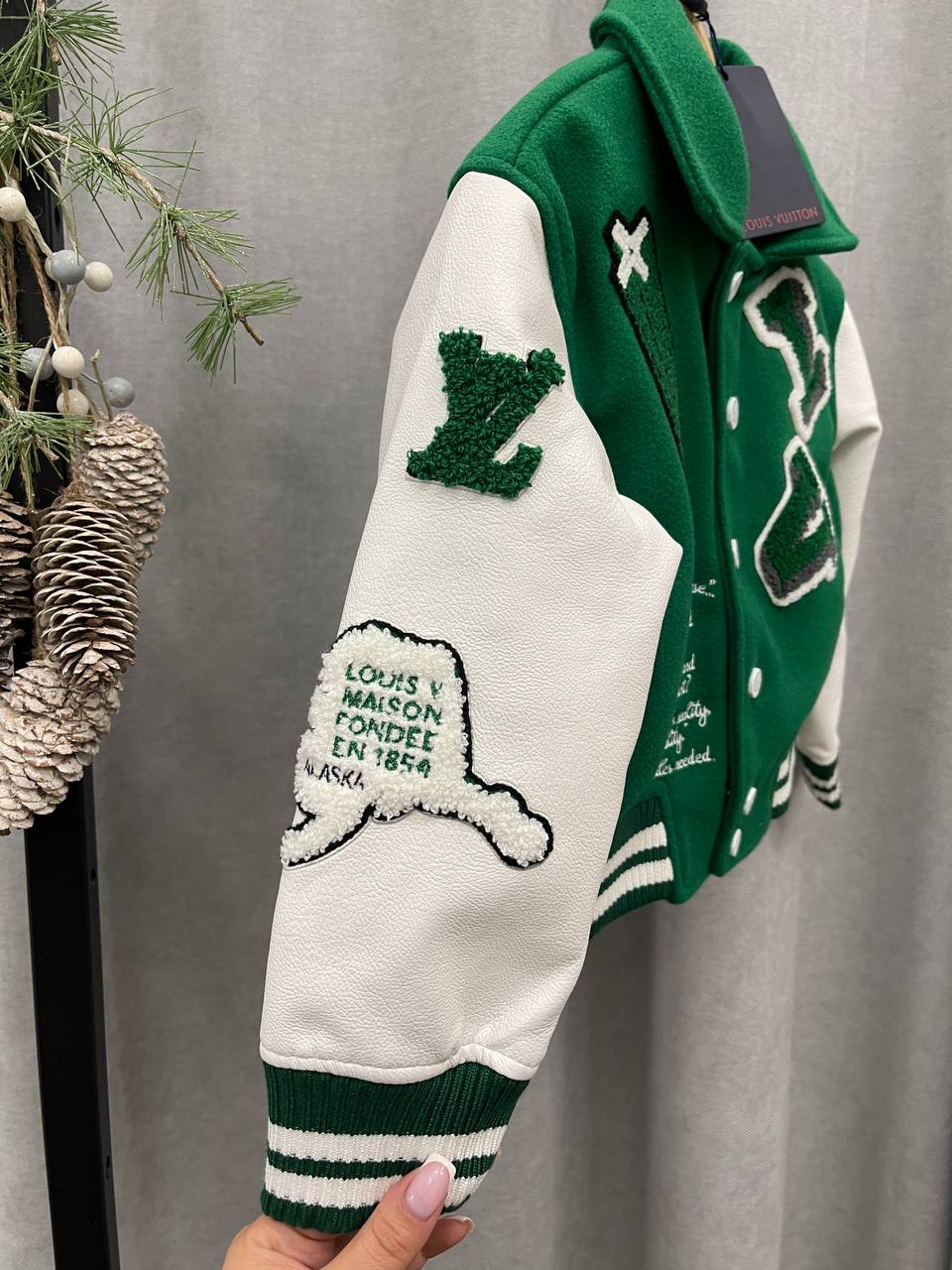 Бомбер LUX-100721 от Louis Vuitton – это яркий предмет гардероба, выполненный в спортивном стиле. Зеленый бомбер с белыми рукавами, декорирован нашивками, надписями и эмблемами, привлекает внимание своим необычным дизайном. Идеален для создания стильных и запоминающихся образов.
