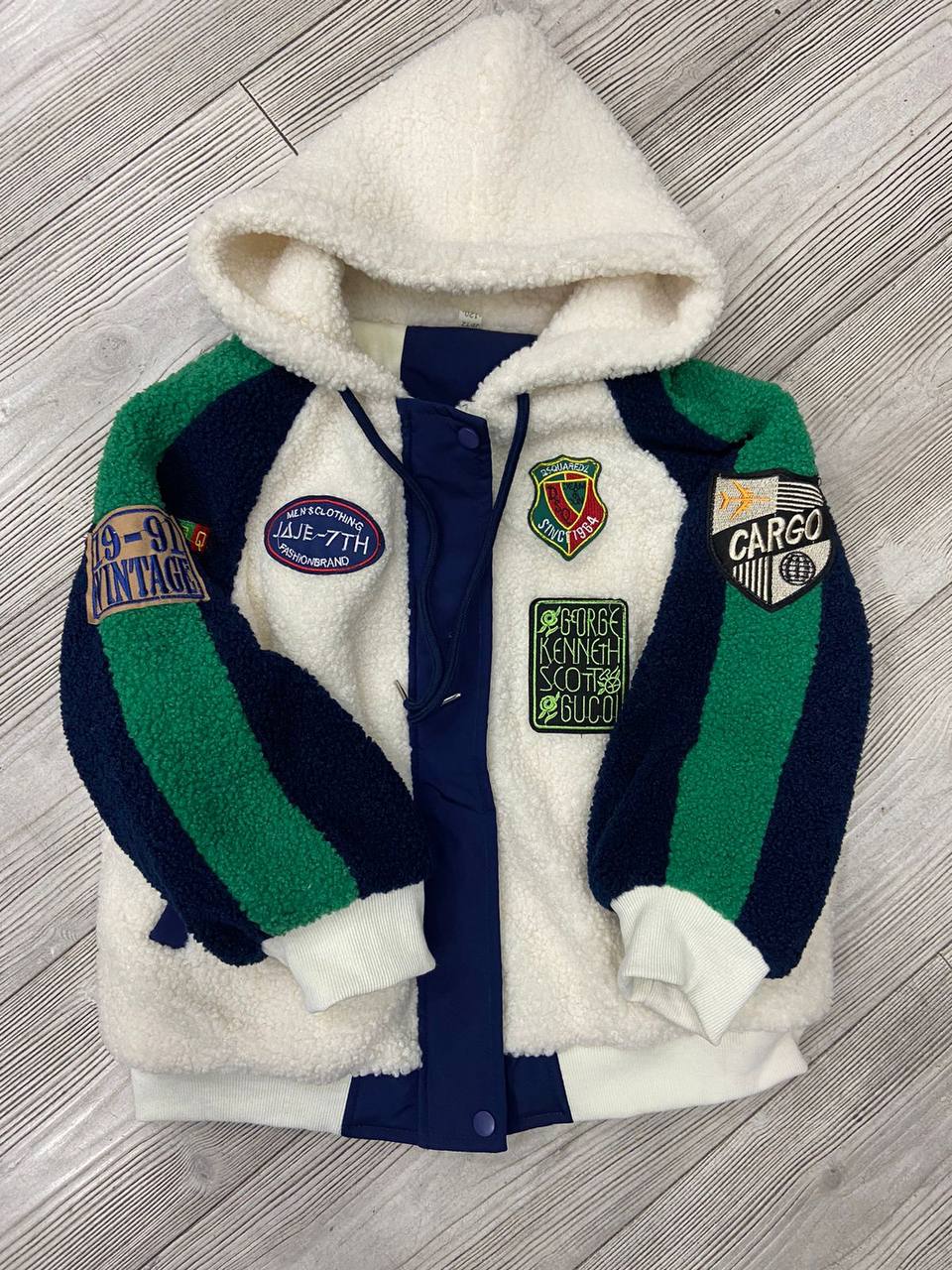 Бомбер LUX-80598 – это стильная куртка, сочетающая комфорт и современный дизайн. Модель выполнена в белом цвете с элементами зеленого и темно-синего, имеет объемный капюшон и декоративные нашивки. Идеально подходит для повседневной носки, создавая яркий и запоминающийся образ.