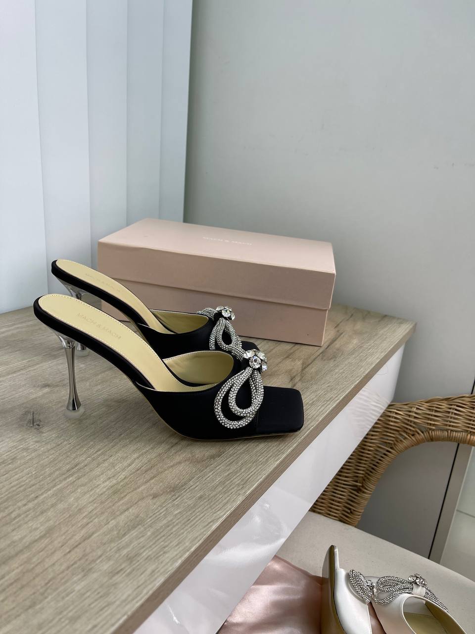Элегантные женские босоножки MACH & MACH — идеальное дополнение к вечернему или праздничному образу. Модель выполнена в черном цвете и украшена сверкающими кристаллами, имитирующими бант. Оригинальный прозрачный каблук придает обуви завершенный и изысканный вид.