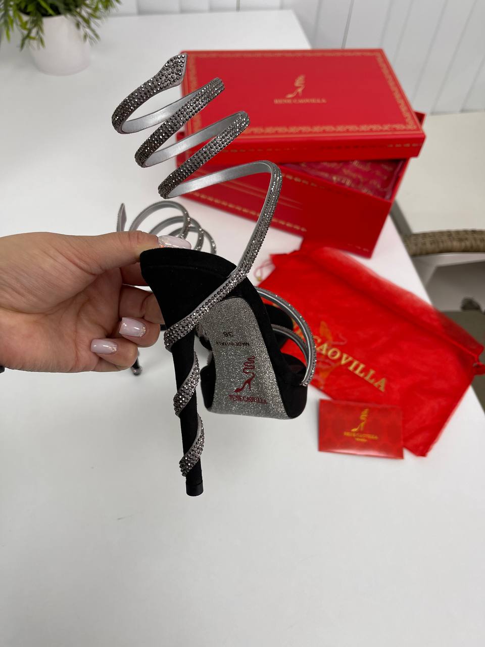 Босоножки Rene Caovilla LUX-86584 – это воплощение роскоши и элегантности, представляющие собой изысканную обувь для особого случая. Чёрные босоножки на высоком каблуке украшены мерцающими деталями, что придаёт им неповторимый блеск. Идеальный выбор для вечерних выходов и торжественных мероприятий.