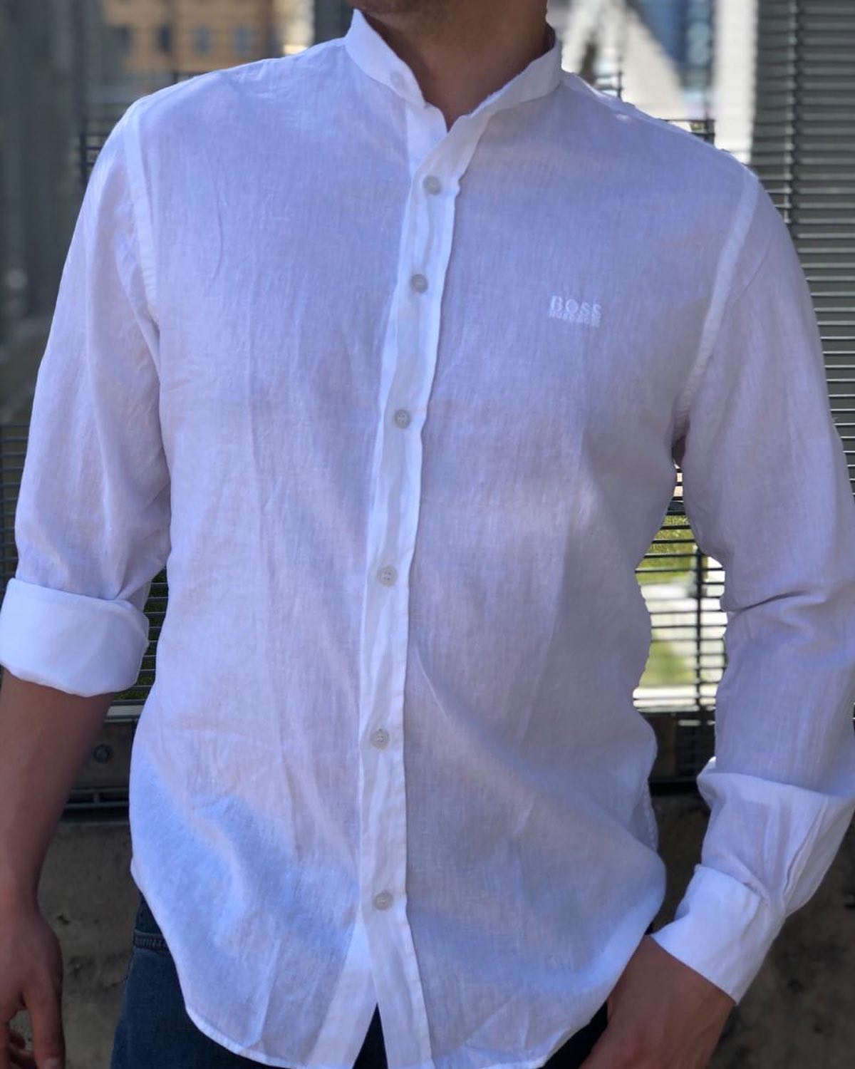 Рубашка BOSS LUX-32537 — это элегантная мужская рубашка с воротником-стойкой, идеально подходящая для создания стильных и комфортных образов. Ее минималистичный дизайн и высокое качество делают ее универсальной вещью в гардеробе. Белый цвет и логотип бренда добавляют утонченности.