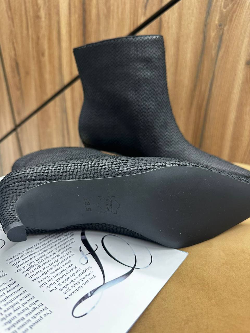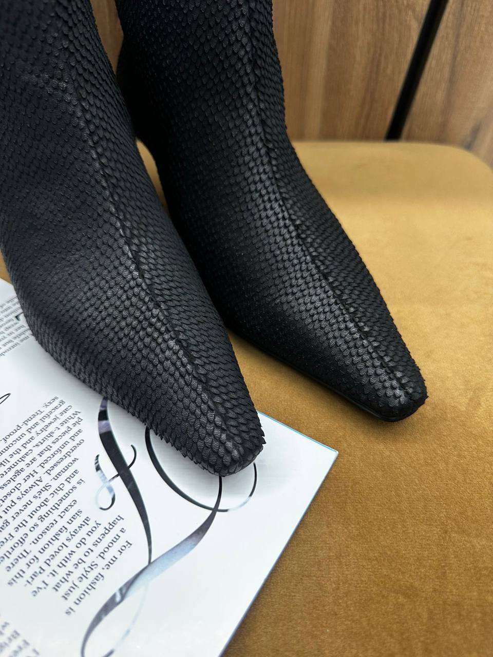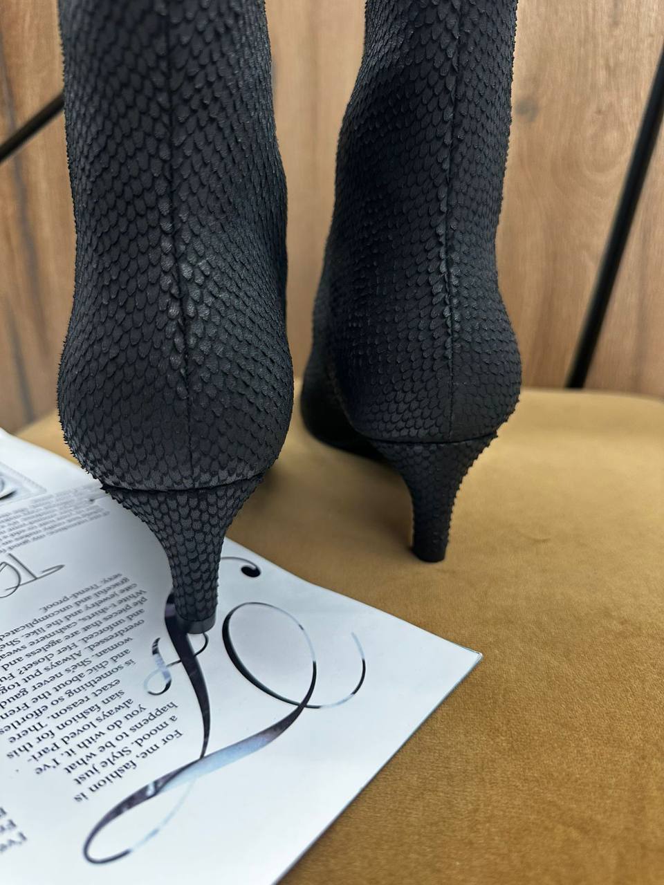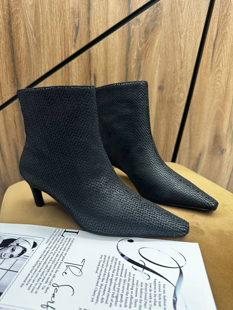 Ботильоны LUX-126958 – элегантная и стильная обувь, которая подчеркнет ваш образ. Модель выполнена в черном цвете с интересной фактурой. Идеально подходят для создания модных образов на каждый день.