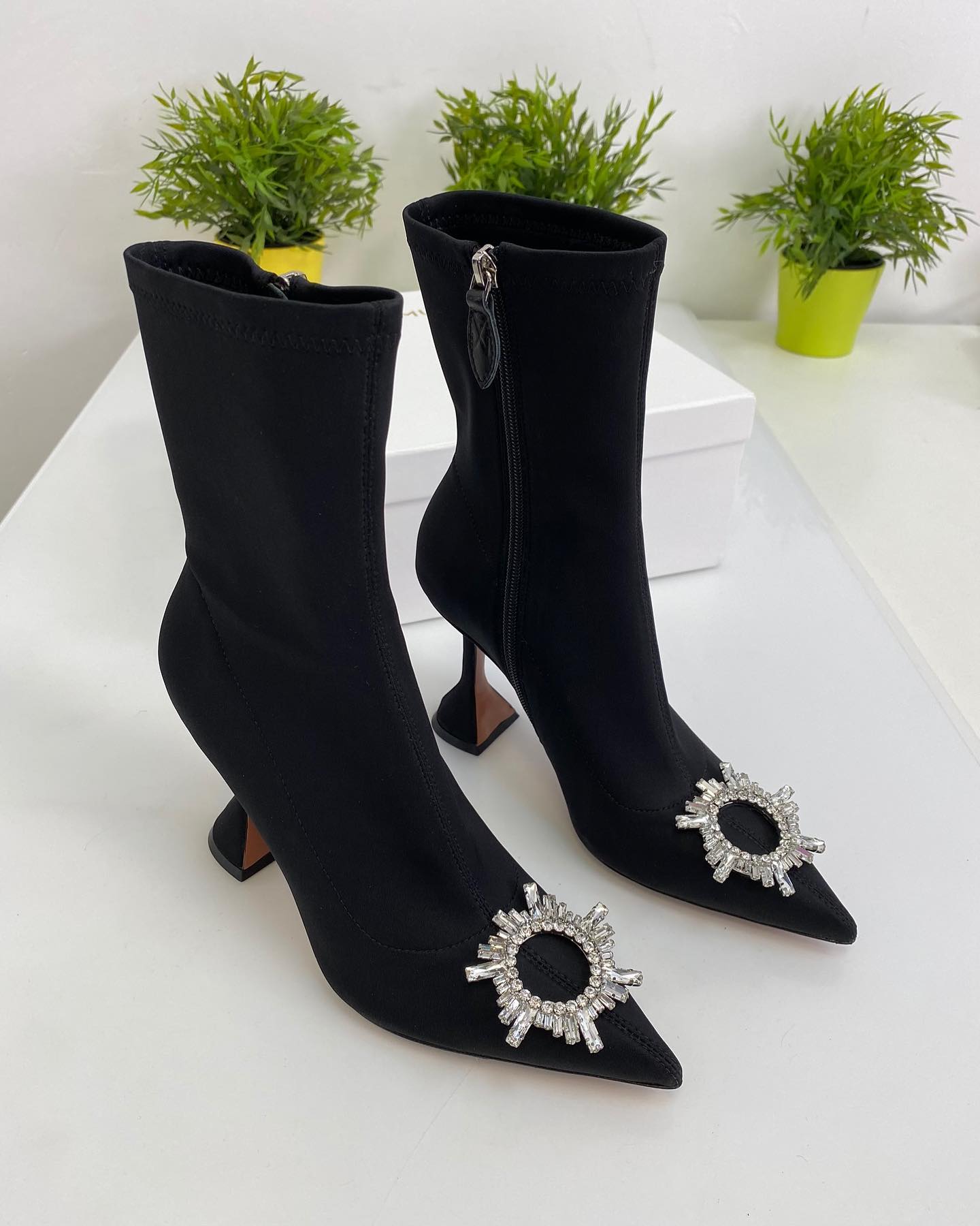Эти эффектные ботильоны AMINA MUADDI, выполненные в элегантном черном цвете, станут ярким акцентом в вашем образе. Остроконечный носок и скульптурный каблук добавляют моде смелости, а сверкающий кристальный декор на мыске придает роскоши. Идеальный выбор для создания незабываемых вечерних или праздничных нарядов, подчеркивающих индивидуальность.