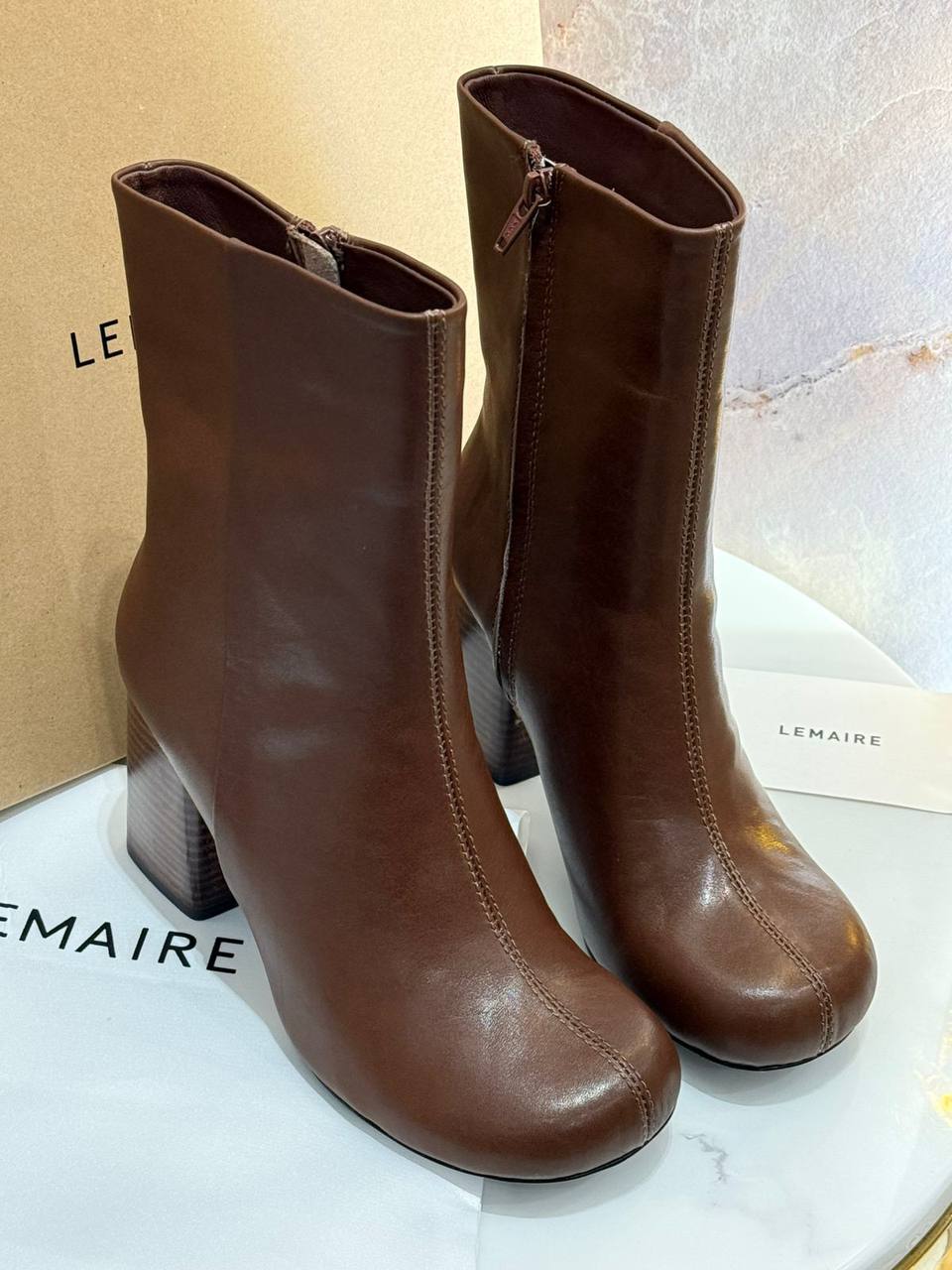 Ботильоны Lemaire (артикул LUX-113021) представляют собой стильную демисезонную обувь. Ботильоны выполнены в классическом стиле, имеют насыщенный коричневый цвет и гладкую текстуру. Эта модель идеально подходит для повседневной носки и создания элегантных образов.