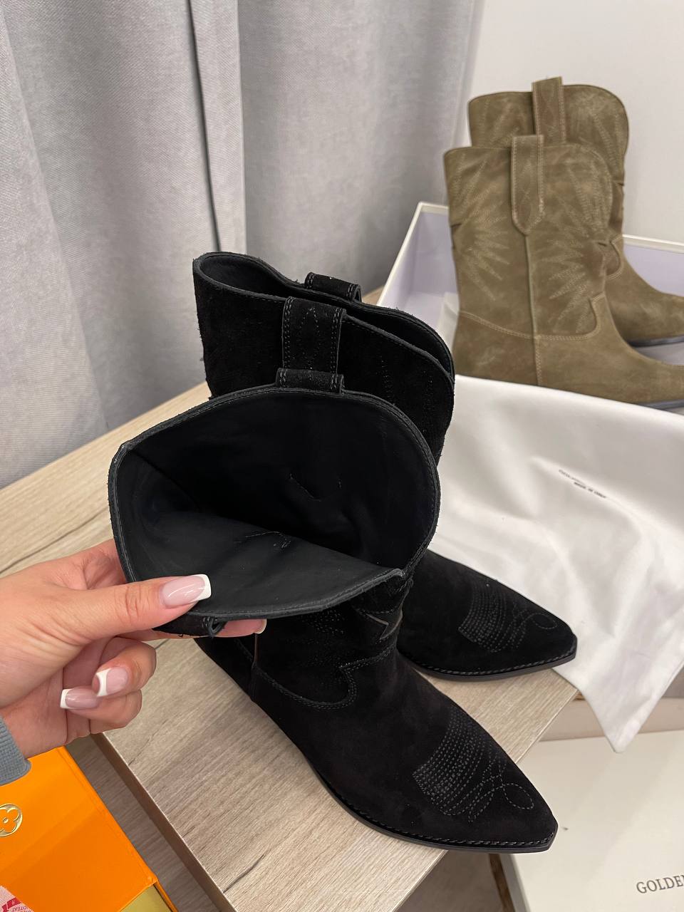 Ботинки Golden Goose LUX-111983 - это воплощение элегантности и стиля, сочетающее в себе узнаваемый дизайн и изысканные детали. Черные ботинки в ковбойском стиле с мягкой текстурой замши, украшены декоративной строчкой. Они идеально подойдут для создания стильных образов в повседневной жизни.