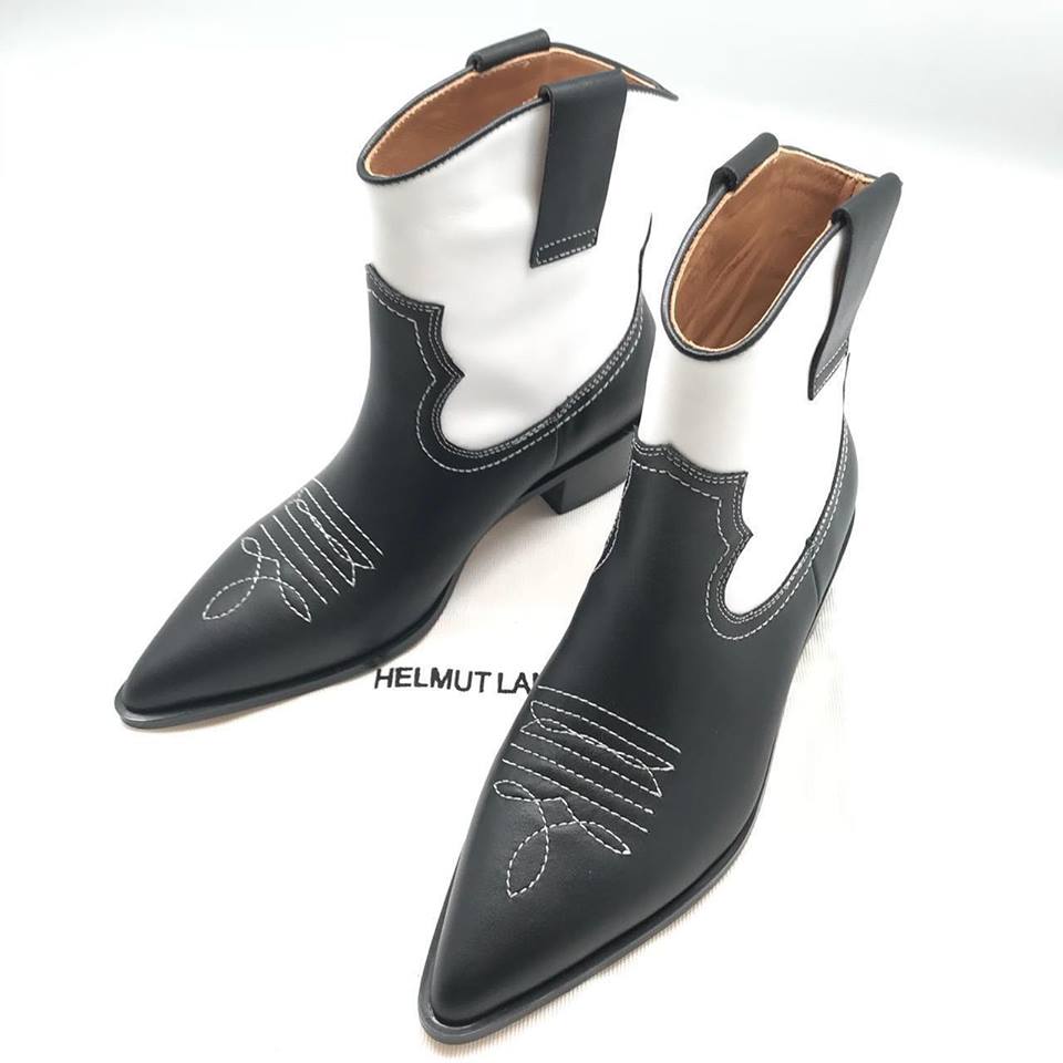 Ботинки женские LUX-20722 от HELMUT LANG — это стильная модель, выполненная в ковбойском стиле. Контрастное сочетание черного и белого цветов, а также оригинальная вышивка на мыске придают им неповторимый вид. Эти ботинки идеально подойдут для создания эффектных образов в повседневной жизни.