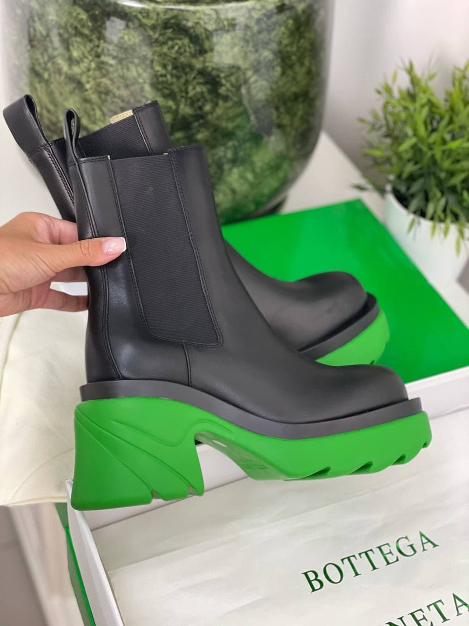 Ботинки Bottega Veneta LUX-53367 представляют собой стильное и современное дополнение к гардеробу. Эта модель сочетает в себе классический силуэт челси с выразительной массивной подошвой ярко-зеленого цвета, создавая смелый и запоминающийся образ. Они идеально подойдут для тех, кто ценит сочетание комфорта и трендовой эстетики в повседневной обуви.