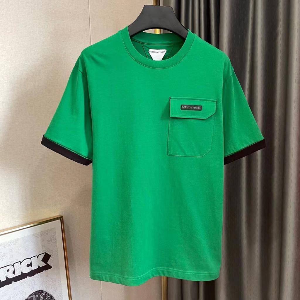 Футболка Bottega Veneta LUX-72076 — это стильный предмет гардероба, выполненный в современном стиле. Футболка имеет насыщенный зеленый цвет с черными контрастными манжетами на рукавах. Эта модель предназначена для создания повседневных и модных образов.