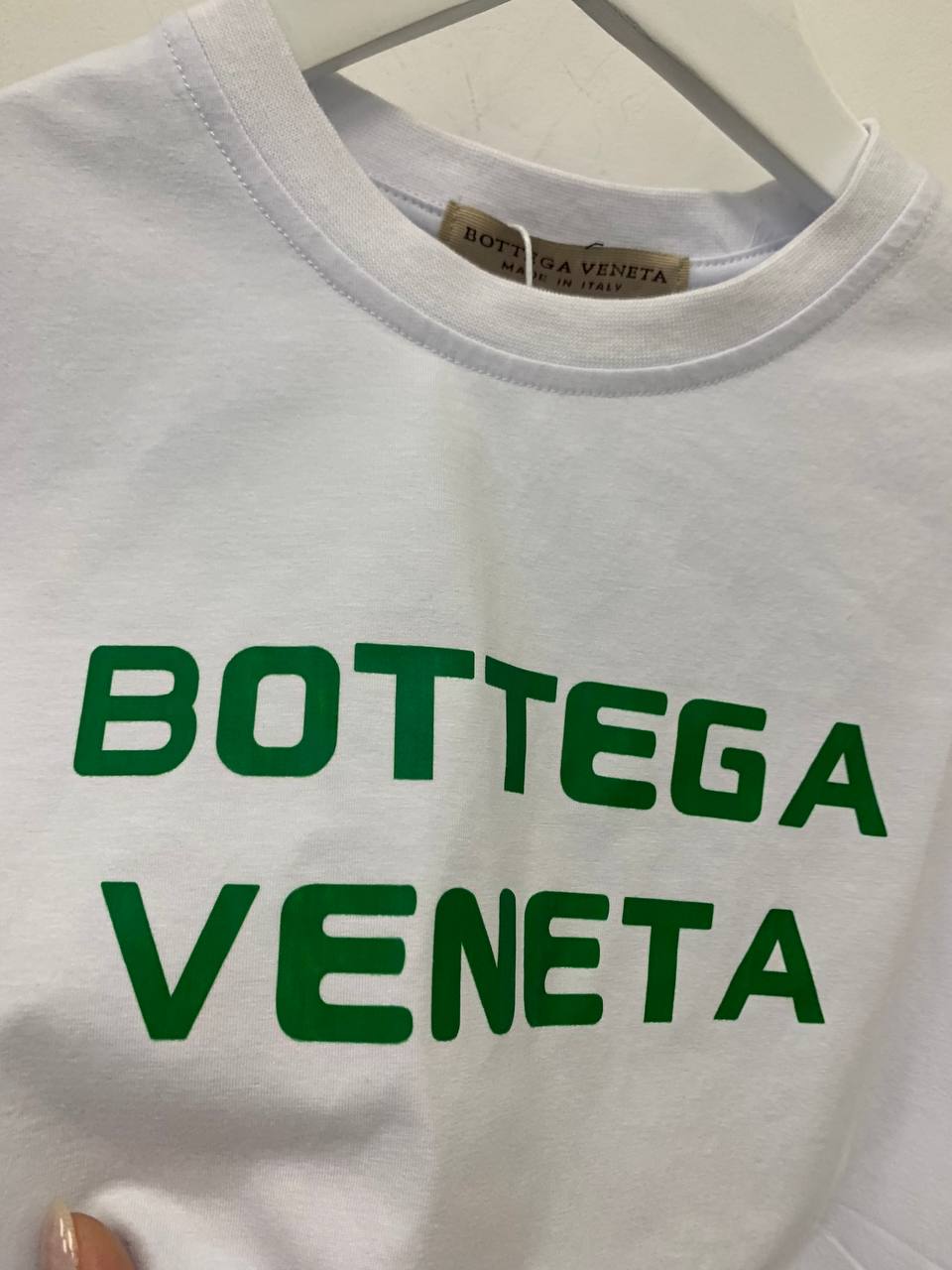 Футболка Bottega Veneta LUX-93344 – это стильная белая футболка с ярким логотипом бренда. Футболка имеет классический крой, круглый вырез и короткие рукава. Такая футболка отлично подойдет для создания повседневных образов.