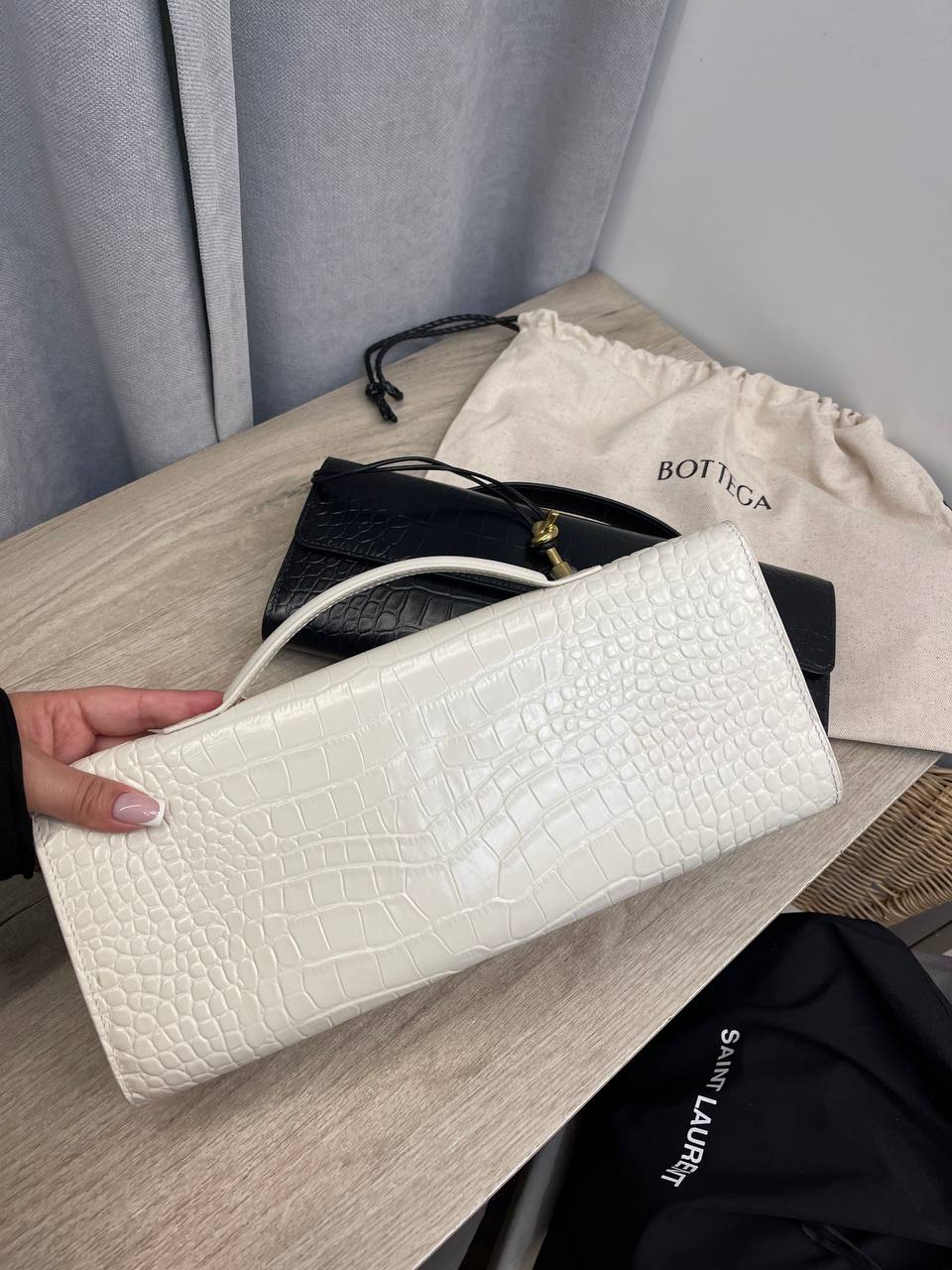 Клатч Bottega Veneta LUX-111432 – элегантный аксессуар, который подчеркнет ваш безупречный вкус. Клатч выполнен в классическом стиле, что делает его идеальным дополнением к любому образу. Белый цвет и текстура под крокодиловую кожу придают ему роскошный вид.