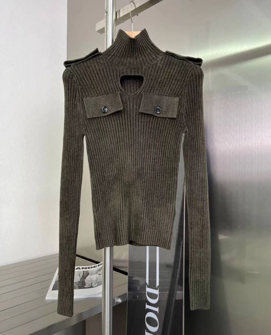 Данная модель Bottega Veneta LUX-60375 – это эффектная кофта, выполненная в стиле милитари, отличающаяся оригинальным дизайном. Высокий воротник, имитация погон на плечах и накладные карманы с пуговицами придают изделию узнаваемость. Декоративный вырез на груди добавляет пикантности и оригинальности. ribbed knit structure ensures a flattering fit.