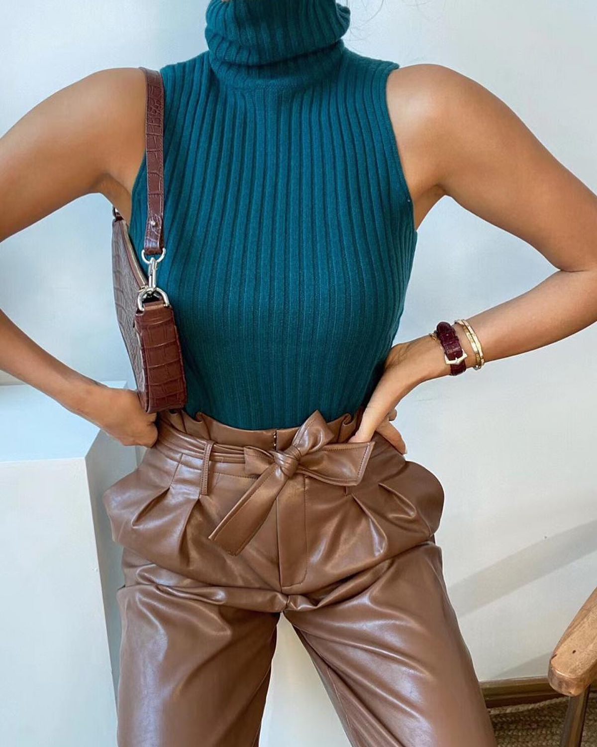 Кофта женская Bottega Veneta LUX-39095 – это элегантный предмет гардероба, который сочетает в себе лаконичный дизайн и утонченность. Модель выполнена в темно-зеленом цвете и отличается фактурной вязкой в рубчик, что придает изделию особый шарм. Воротник-гольф и отсутствие рукавов подчеркивают минималистичный стиль, делая ее идеальным выбором для создания современных образов.