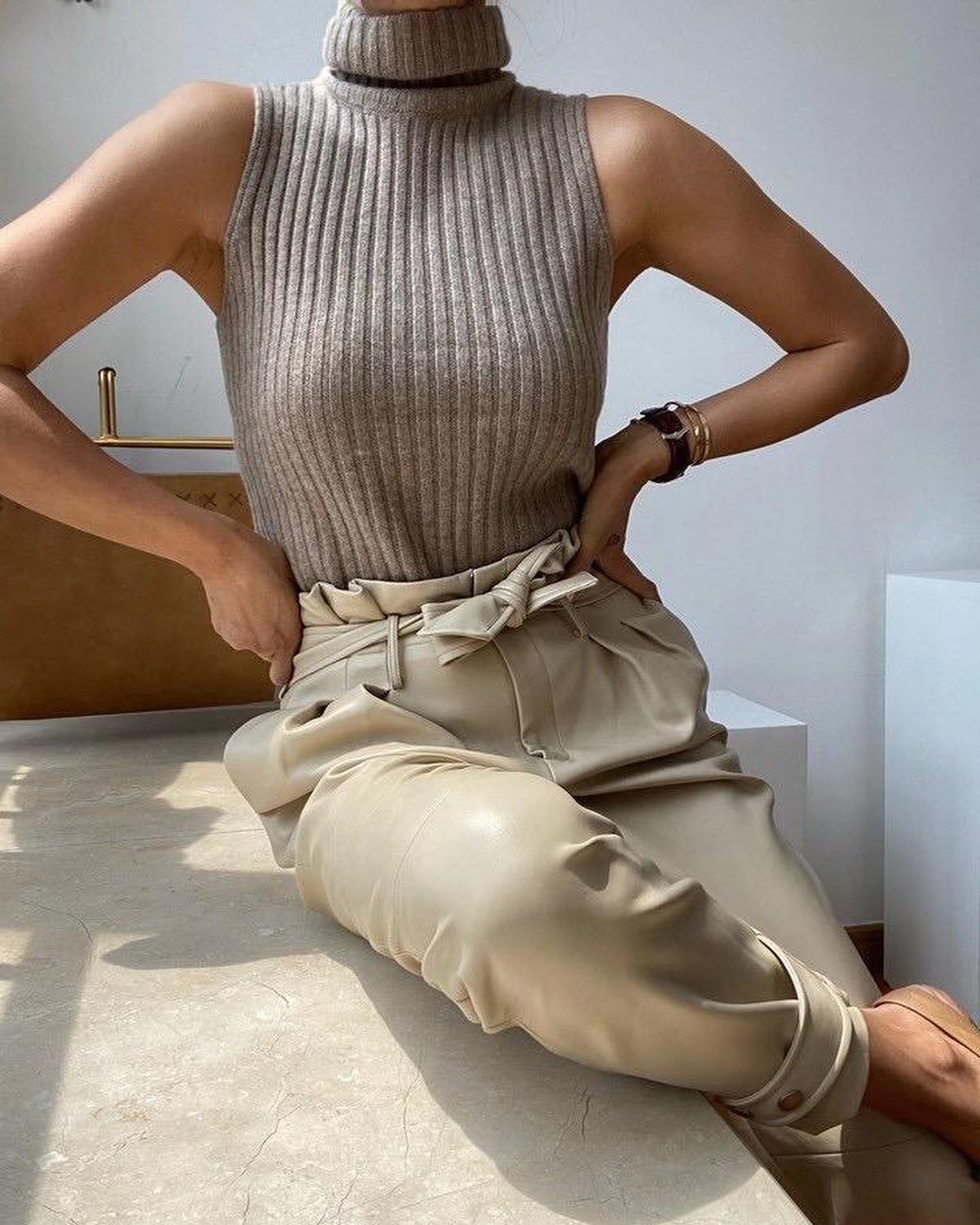 Кофта женская Bottega Veneta LUX-39096 представляет собой стильный элемент гардероба, выполненный в современном дизайне. Эта модель без рукавов с высоким воротником-гольф идеально дополнит как повседневные, так и более элегантные образы, подчеркивая изысканный вкус обладательницы.