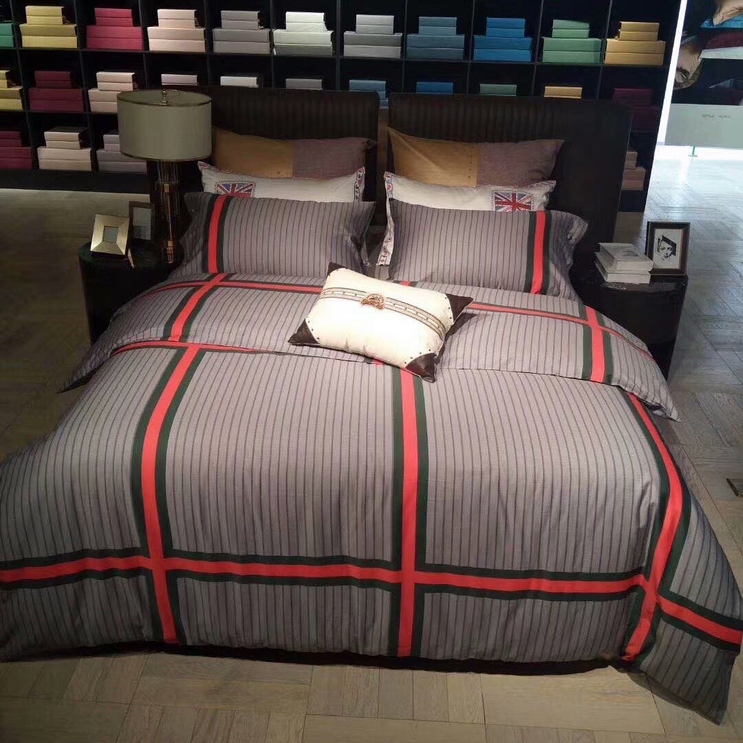 Комплект постельного белья Bottega Veneta LUX-24383 отличается стильным дизайном и высоким качеством. Серый фон с контрастной полосой из красных и зеленых линий придает белью элегантный и современный вид. Этот комплект идеально подойдет для создания уютной и роскошной атмосферы в спальне, отражая изысканный вкус владельца.