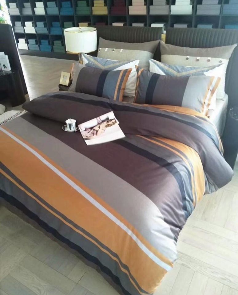 Комплект постельного белья Bottega Veneta LUX-28619 представляет собой стильное решение для спальни, выполненное в современном дизайне. Аккуратные полосы различных оттенков коричневого, серого и оранжевого создают элегантный вид. Белье прекрасно подойдет для создания уютной атмосферы и придаст спальне изысканный шарм.
