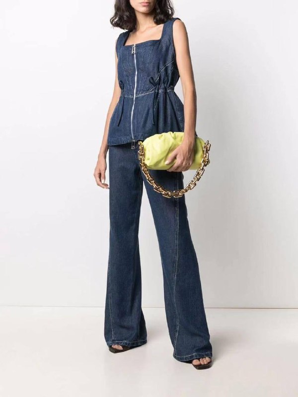 Представленный костюм Bottega Veneta LUX-50965 – это стильное решение для современной женщины. Комплект, состоящий из топа-корсет и расклешенных джинсовых брюк, выполнен в современном стиле, идеально подходит для создания эффектных образов.