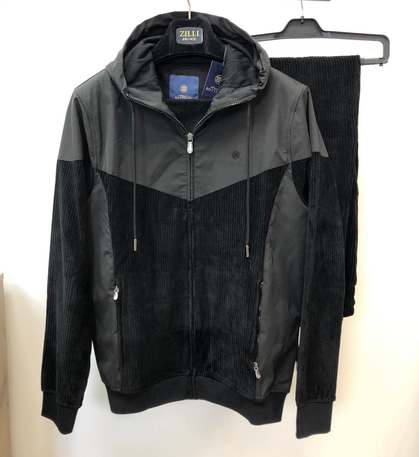 Представленный спортивный костюм Bottega Veneta LUX-37439 демонстрирует элегантный дизайн, сочетающий в себе современный стиль и комфорт. Костюм состоит из куртки с капюшоном и брюк, выполненных в классическом черном цвете. Сочетание гладких вставок и фактурного вельвета придает изделию изысканный вид, делая его подходящим как для активного отдыха, так и для повседневного ношения.