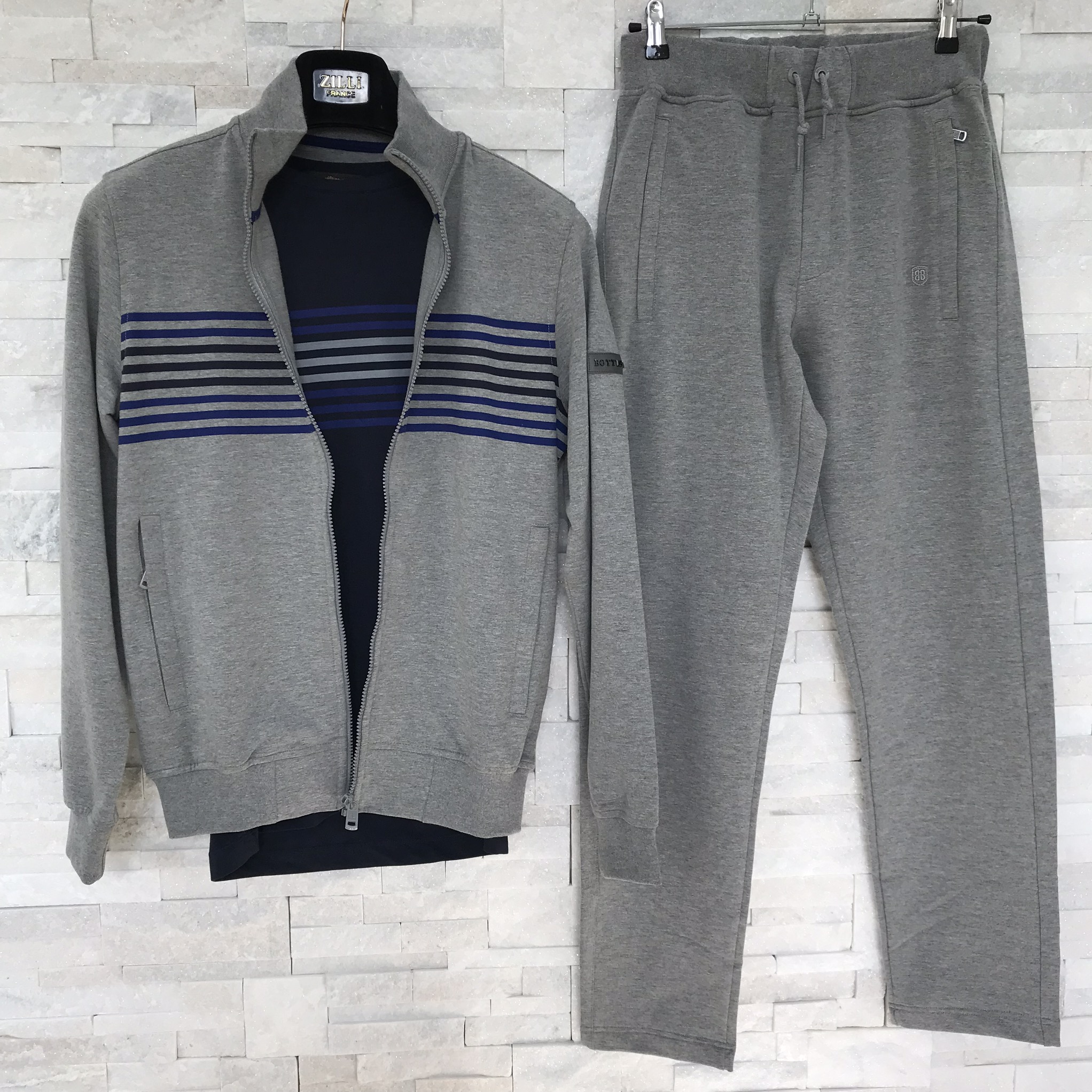 Этот спортивный костюм Bottega Veneta LUX-16464 — стильный и практичный выбор для современного мужчины. Комплект, состоящий из куртки и брюк, выполнен в универсальном сером цвете и дополнен темно-синей футболкой, создавая завершенный образ. Дизайн отличается минималистичным подходом с акцентом на комфорт и качество.