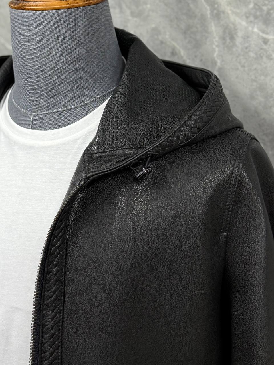 Кожаная куртка Bottega Veneta LUX-118449 - это стильный предмет гардероба в классическом черном цвете. Куртка имеет современный дизайн с капюшоном и практичными элементами, подходящими для повседневной носки и создания элегантных образов. Модель сочетает в себе комфорт и изысканность.