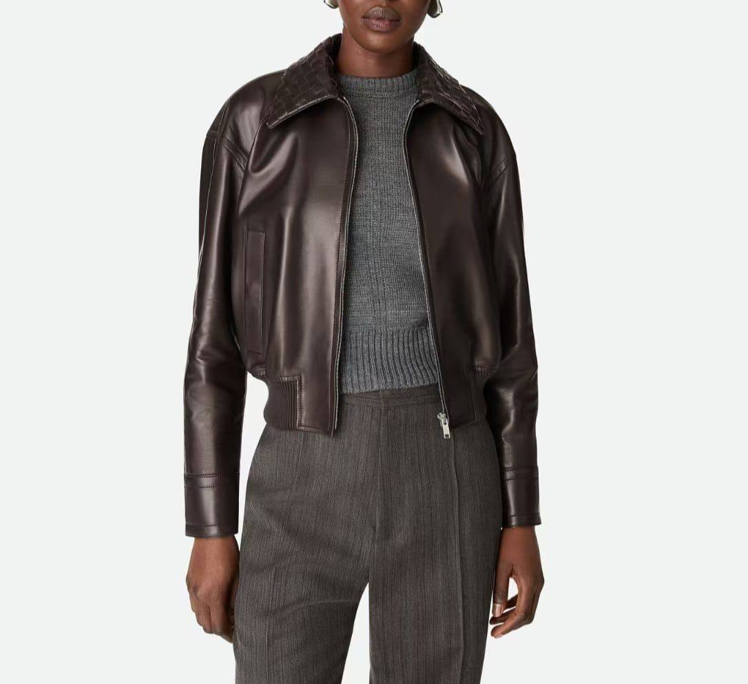Кожаная куртка Bottega Veneta LUX-124996 – это стильный элемент гардероба, сочетающий в себе классический дизайн и современные тенденции. Идеальный выбор для создания элегантного и запоминающегося образа.