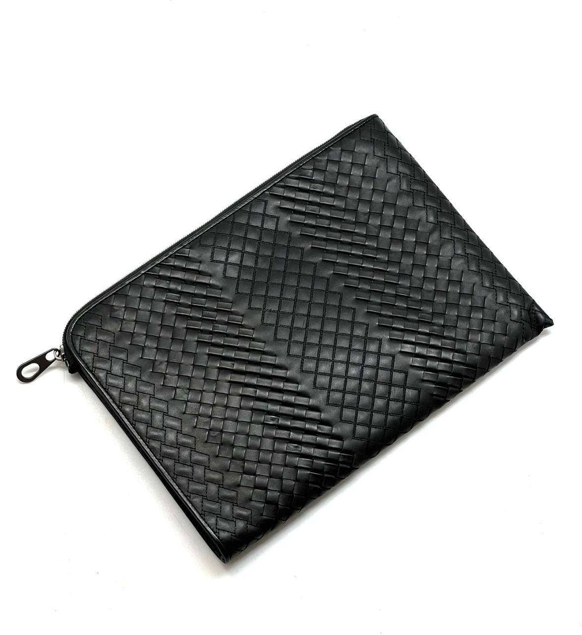Папка Bottega Veneta LUX-71448 – это стильный аксессуар для хранения документов и других необходимых вещей. Папка выполнена в черном цвете, имеет уникальную плетеную текстуру, которая придает ей элегантный и узнаваемый вид. Отлично подходит для деловых встреч и повседневного использования.