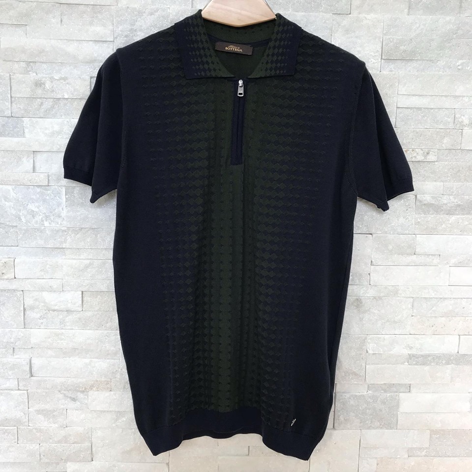 Это элегантное поло Bottega Veneta LUX-15452 идеально подходит для создания стильных и непринужденных образов. Сочетание темно-синего и зеленого цветов, а также геометрического узора придает изделию утонченность. Модель с коротким рукавом и молнией на воротнике отличается современным дизайном и высоким качеством.