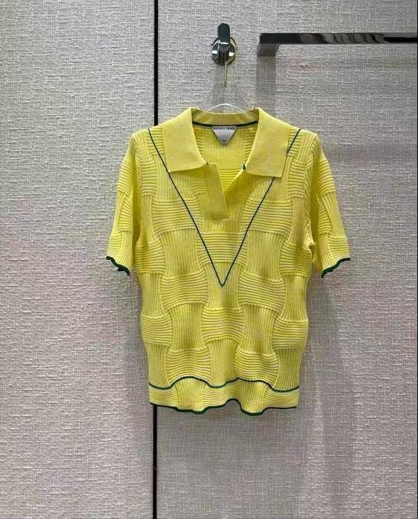 Поло Bottega Veneta LUX-70068 — это стильный и изысканный элемент гардероба, выполненный в ярком желтом цвете. Его фактурный вязаный дизайн с контрастной зеленой отделкой по V-образному вырезу и манжетам придает образу современный вид. Эта модель идеально подходит для создания элегантных повседневных или более формальных образов.