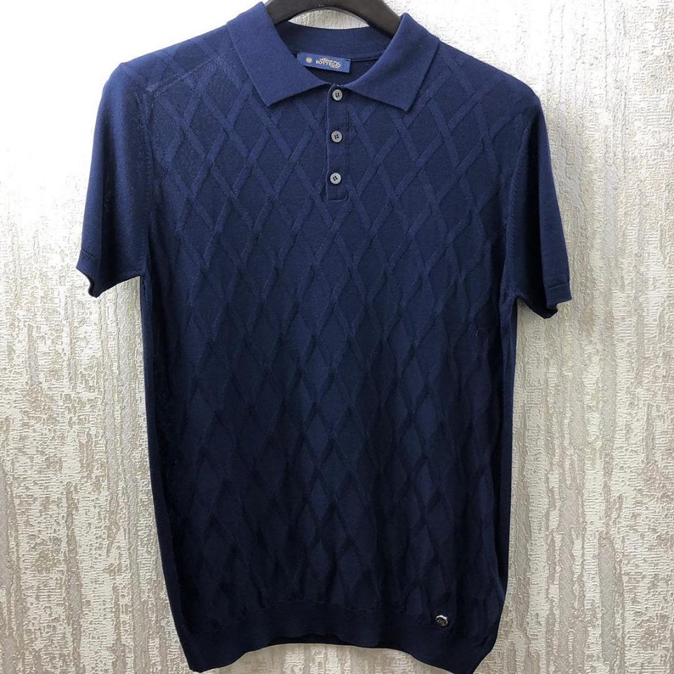 Поло Bottega Veneta LUX-10384 — это стильная и элегантная модель, выполненная в темно-синем цвете. Изделие украшено ненавязчивым ромбовидным узором, что придает ему изысканность. Классический воротник и планка на трех пуговицах делают эту модель универсальной. Поло Bottega Veneta LUX-10384 идеально подходит как для повседневных образов, так и для более формальных случаев, добавляя нотку роскоши.