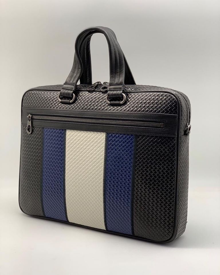 Представляем вам элегантный портфель Bottega Veneta LUX-18468, выполненный в классическом стиле с акцентом на уникальный дизайн. Этот аксессуар идеально подойдет для деловых встреч и повседневного использования, демонстрируя изысканный вкус владельца. Сочетание текстурированной кожи и контрастных полос придает ему современный и стильный вид.
