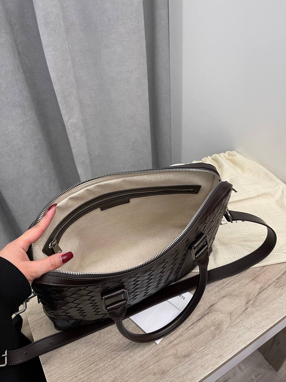Портфель Bottega Veneta LUX-115095 — это воплощение элегантности и стиля. Портфель выполнен в классическом темно-коричневом цвете, имеет текстуру плетения, что придает ему уникальный вид. Он подойдет для деловых встреч, работы или повседневного использования, подчеркивая статус и вкус своего владельца.