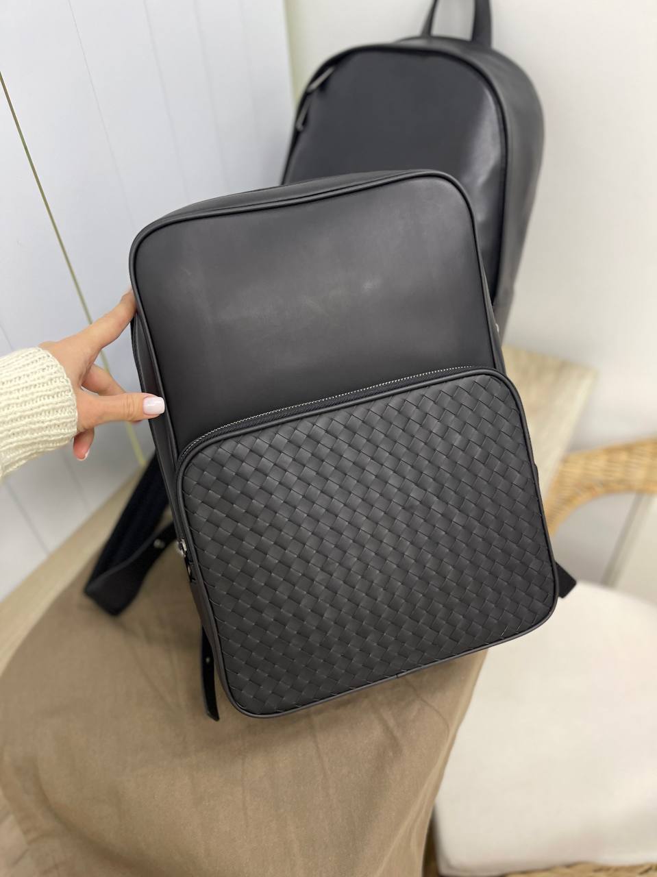Рюкзак мужской Bottega Veneta LUX-81169 — это воплощение элегантности и практичности. Чёрный рюкзак в классическом стиле, сочетает в себе гладкие поверхности и плетеные элементы, создавая неповторимый визуальный эффект. Идеальный выбор для тех, кто ценит стиль и функциональность в повседневной жизни.