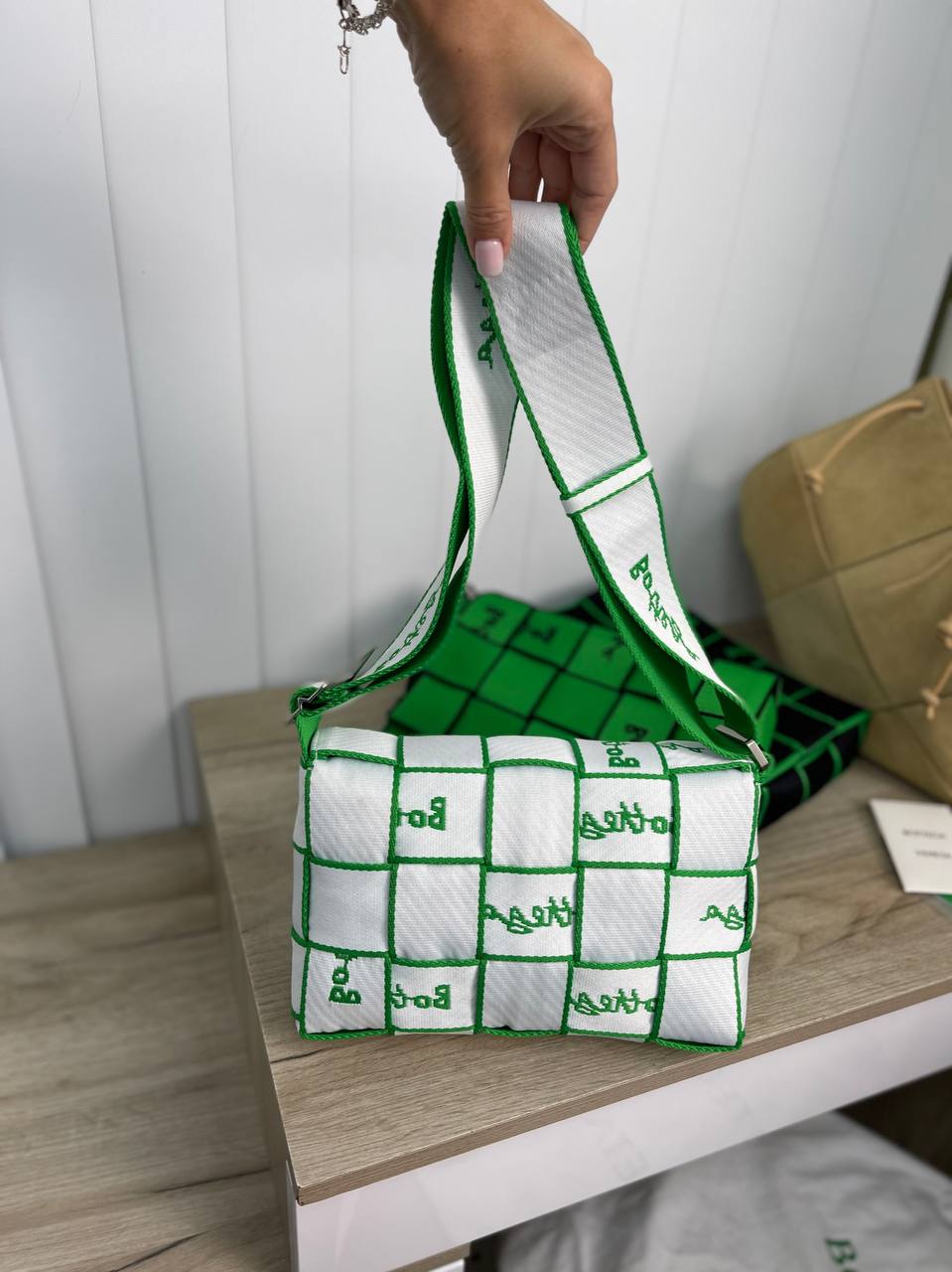 Сумка женская Bottega Veneta LUX-75852 - это стильный аксессуар, который подчеркнет вашу индивидуальность. Сумка выполнена в плетеном дизайне, в бело-зеленых тонах. Отлично подойдет для повседневного использования и станет ярким акцентом в вашем образе.