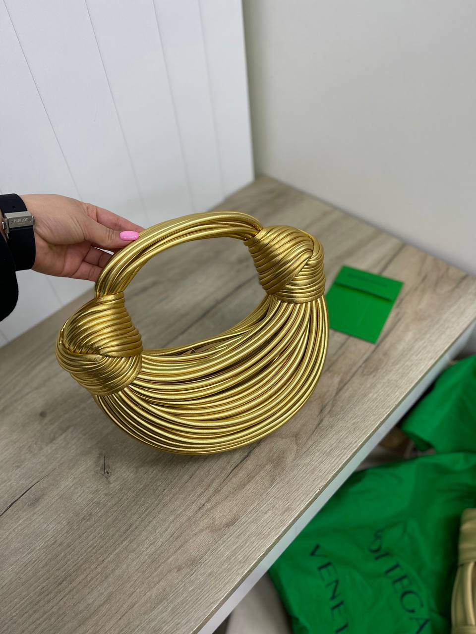 Сумка женская Bottega Veneta LUX-84887 — это элегантный аксессуар для современных женщин. Золотой цвет, округлая форма и текстура создают яркий и запоминающийся образ. Сумка подойдет для вечерних выходов и особых случаев, придавая образу изысканность.