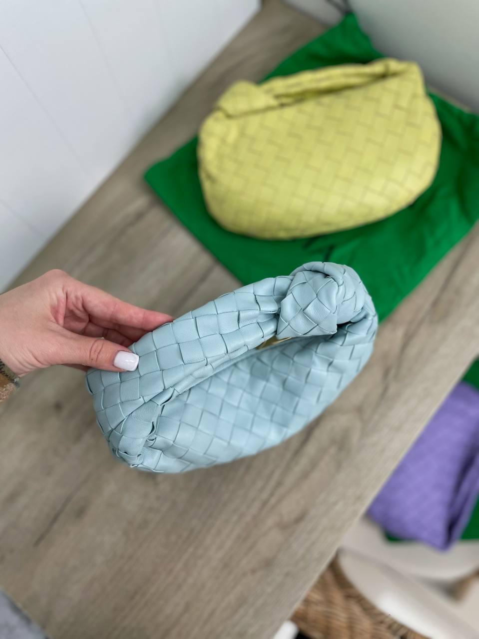 Сумка женская Bottega Veneta LUX-88167 – это стильный аксессуар, который подчеркнет ваш образ. Сумка выполнена в виде полумесяца, нежно-голубого цвета, имеет плетеную текстуру и лаконичный дизайн. Отлично подойдет для повседневного использования и вечерних выходов.