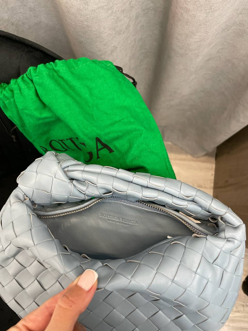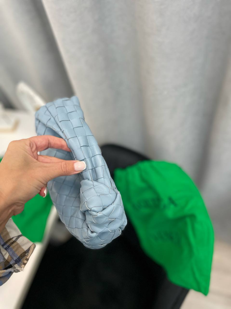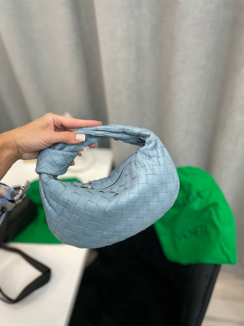 Сумка женская 24 см Bottega Veneta LUX-98568 - это элегантная сумка в стиле минимализма, выполненная в приятном небесно-голубом цвете. Сумка имеет узнаваемый плетеный узор, который придает ей особую текстуру и шарм. Эта сумка идеально дополнит как повседневный, так и вечерний образ.