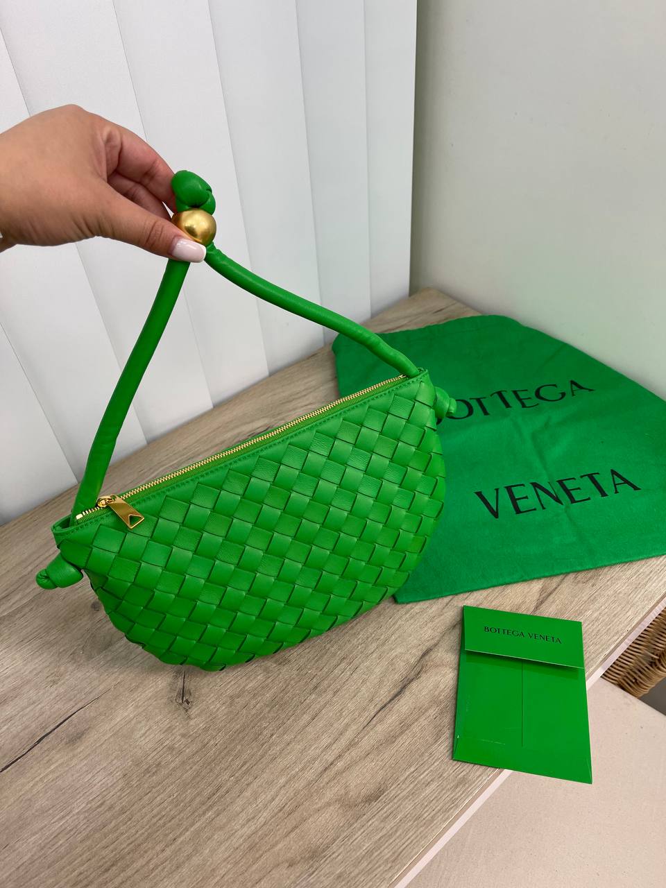 Сумка женская Bottega Veneta LUX-71398, представляет собой стильный аксессуар в ярком зеленом цвете. Дизайн сумки привлекает внимание благодаря плетёному узору, который делает ее выразительной и узнаваемой. Сумка идеально подойдет для создания запоминающихся образов, добавляя в них нотку элегантности.