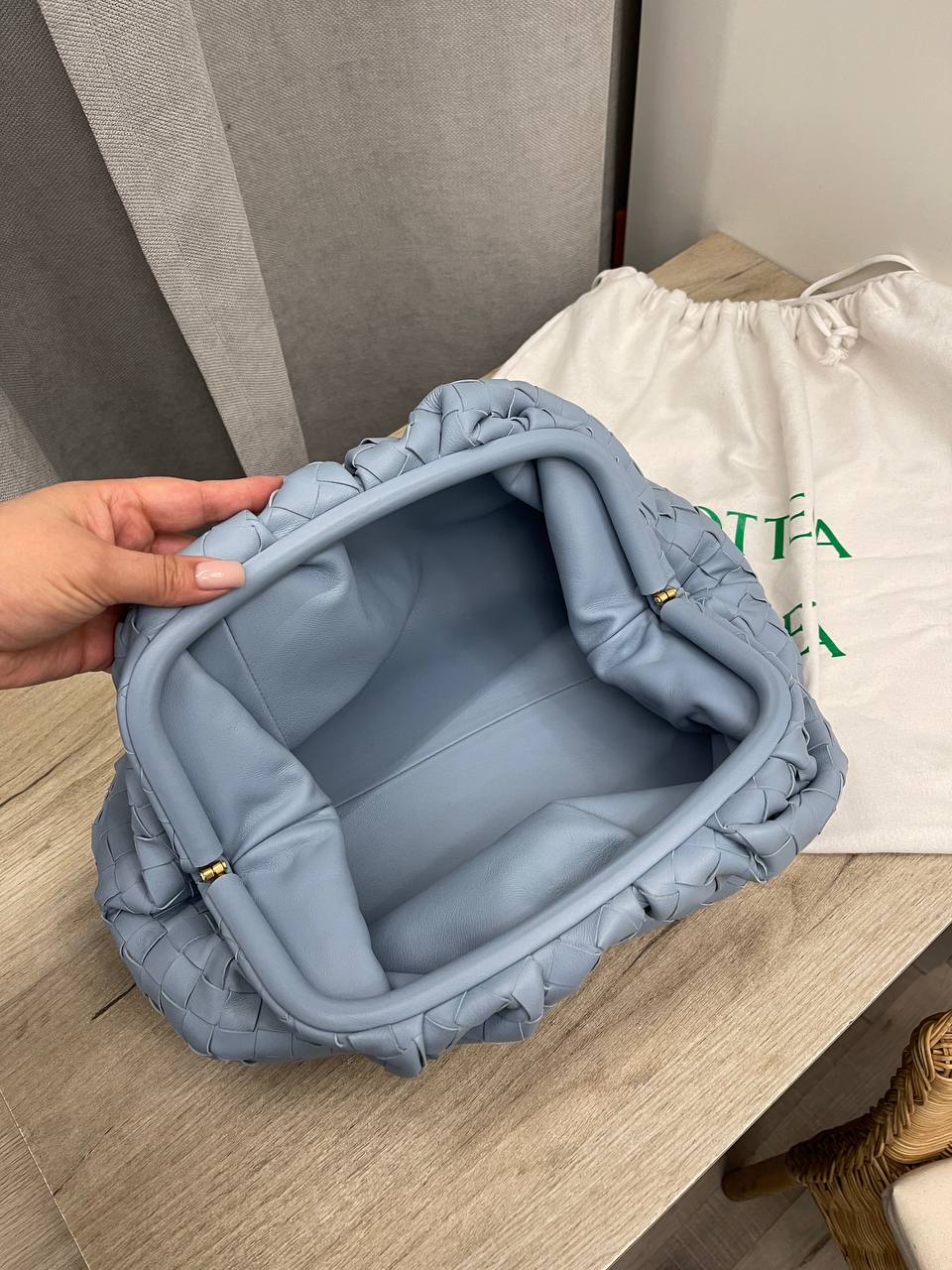 Сумка женская Bottega Veneta LUX-103754 выполнена в фирменном плетеном стиле бренда. Она представляет собой элегантный клатч небесно-голубого цвета, который можно использовать как для повседневных образов, так и для вечерних выходов. Текстурированная поверхность придает сумке изысканный вид.