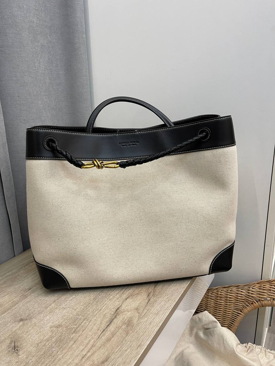 Сумка женская 42 см Bottega Veneta LUX-111445 — это элегантная сумка от известного бренда, выполненная в классическом стиле. Сумка сочетает в себе светлый основной оттенок и контрастные черные элементы, что делает её стильной и универсальной. Эта сумка идеально подходит для повседневного использования.
