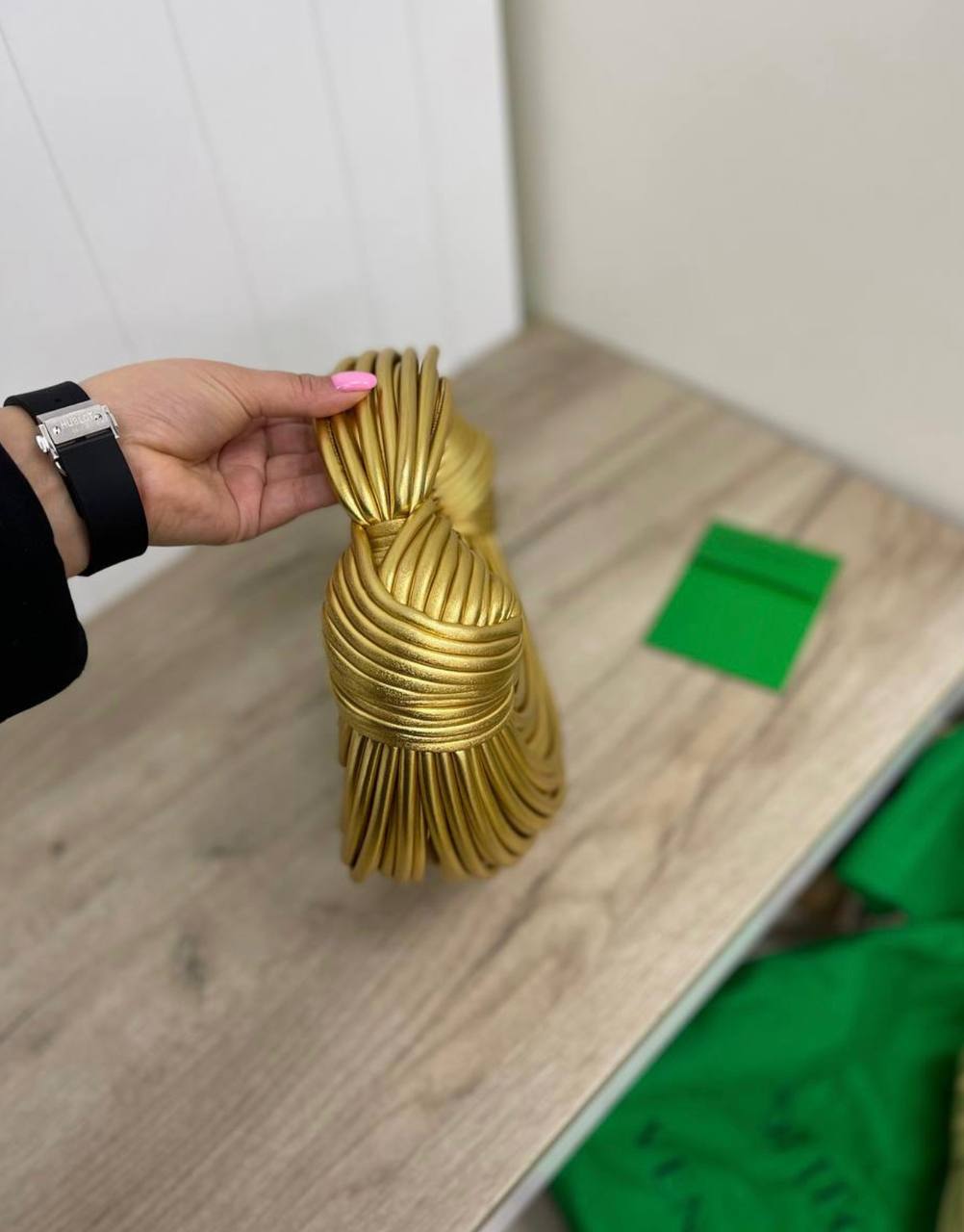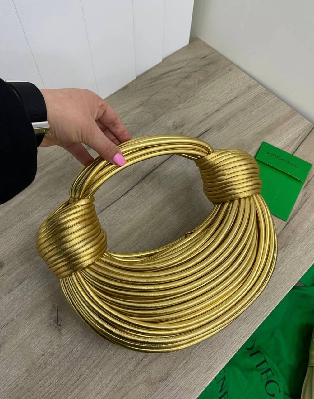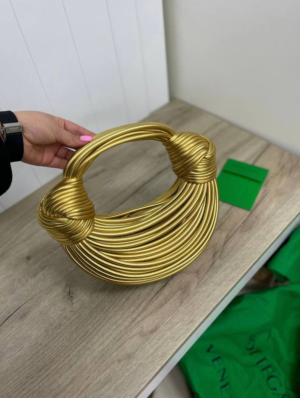 Элегантная женская сумка Bottega Veneta станет ярким акцентом в вашем образе. Золотистый цвет и необычный дизайн делают её идеальной для особых случаев.