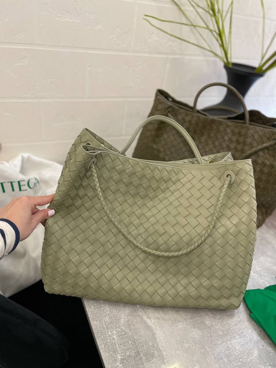 Сумка женская 42 см Bottega Veneta LUX-105883 выполнена в классическом стиле. Сумка нежного зеленого цвета с плетеным узором, который придает ей элегантность и делает ее узнаваемой. Эта сумка идеально подходит для повседневного использования и может стать отличным дополнением к вашему образу.