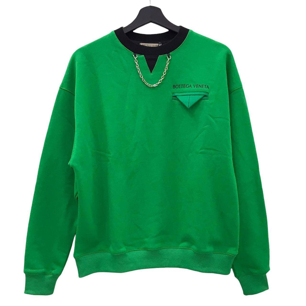 Толстовка Bottega Veneta LUX-58224 – это яркий и стильный элемент гардероба, сочетающий в себе комфорт и эксклюзивный дизайн. Изделие выполнено в насыщенном зеленом цвете, что делает его заметным акцентом в любом образе. Оригинальные детали, такие как цепочка у горловины и фирменный логотип, подчеркивают статус бренда.