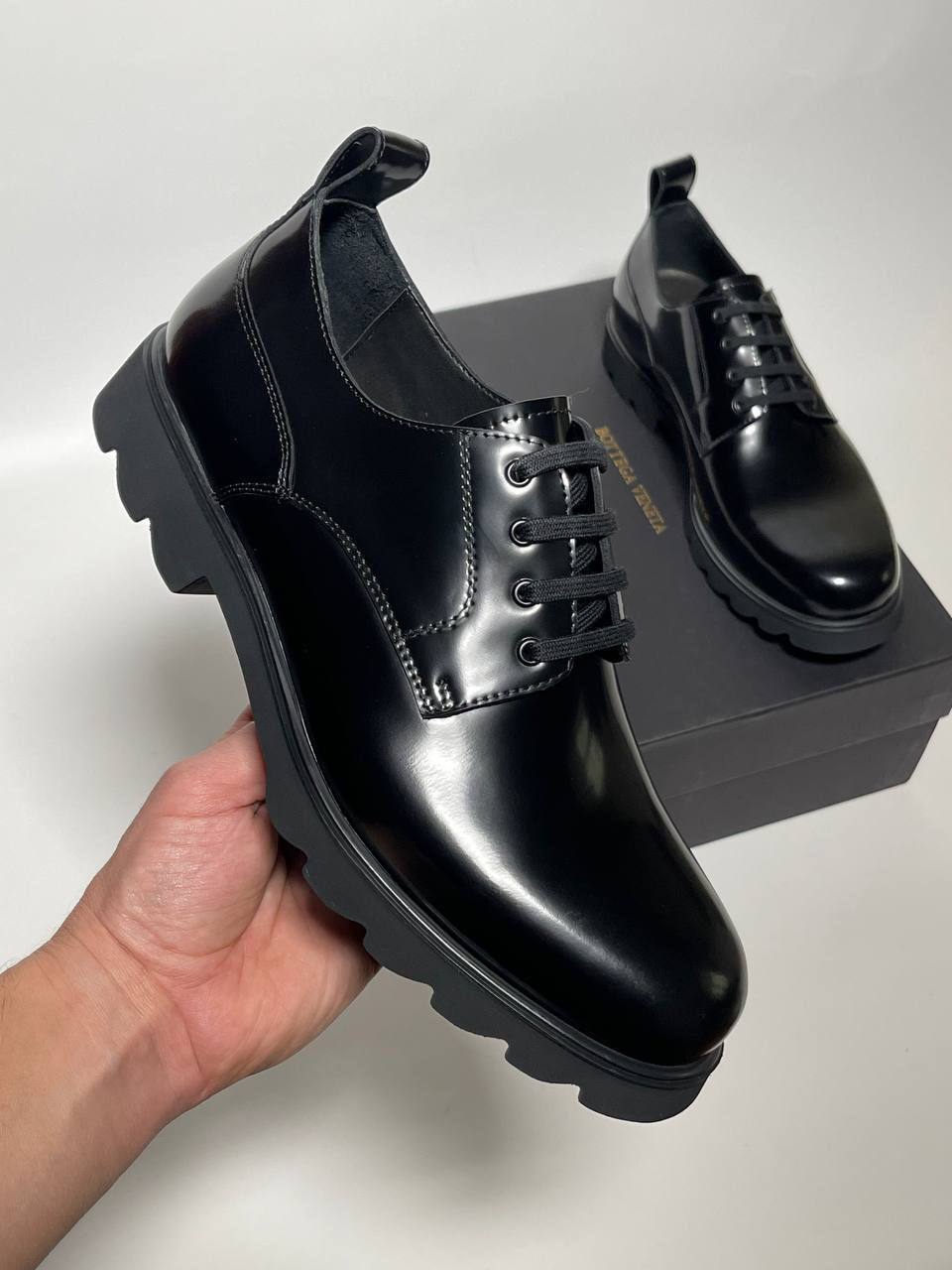Туфли Bottega Veneta LUX-98962 — это классическая обувь, сочетающая в себе элегантность и современный дизайн. Черный цвет и гладкая текстура придают им универсальность, позволяющую сочетать их с различными стилями одежды. Предназначены для повседневной носки, а также для создания деловых образов.