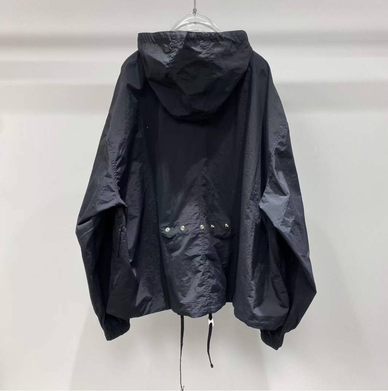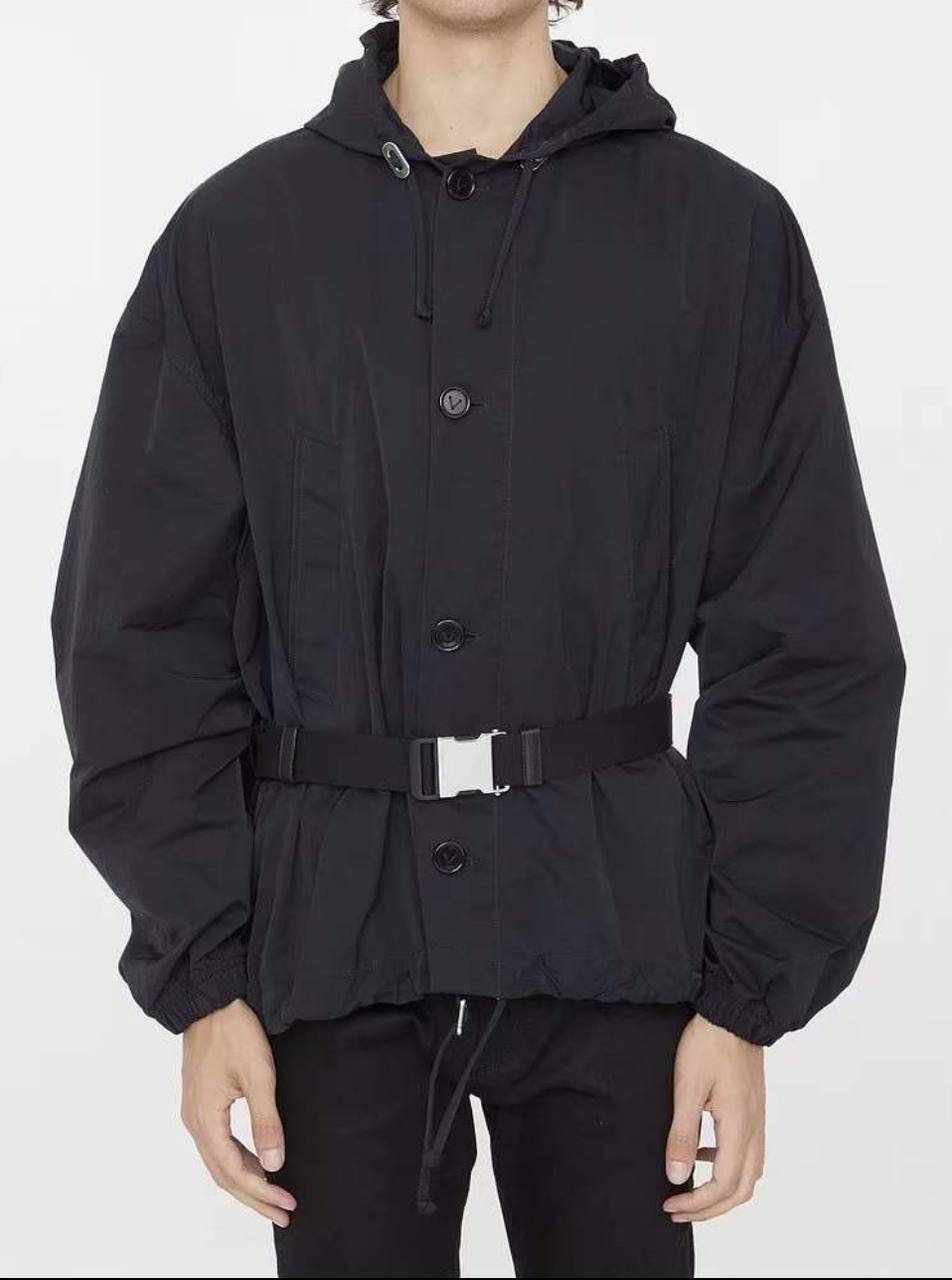 Ветровка Bottega Veneta LUX-102689 – это стильная демисезонная модель черного цвета, выполненная в минималистичном дизайне. Ветровка имеет свободный крой, длинные рукава с манжетами и капюшон, застегивается на пуговицы, а также дополнена поясом с металлической пряжкой, подчеркивающим талию. Отличный выбор для создания повседневных образов в стиле casual.