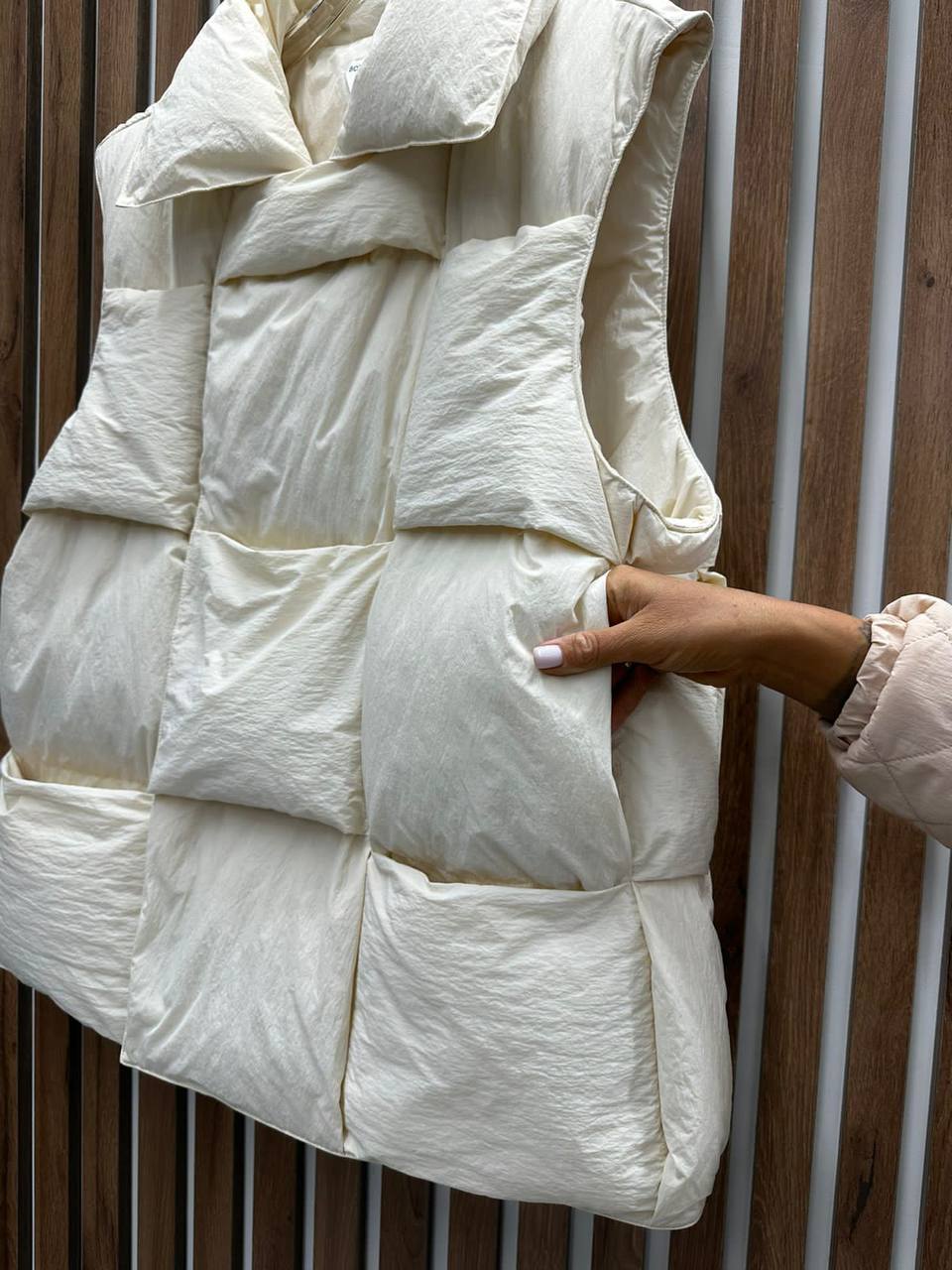 Жилет Bottega Veneta LUX-97321 – это воплощение современной элегантности и комфорта. Жилет выполнен в кремовом оттенке, имеет уникальную текстуру, благодаря чему он выглядит стильно и привлекательно. Этот предмет гардероба идеально подходит для создания модных образов в различных стилях.