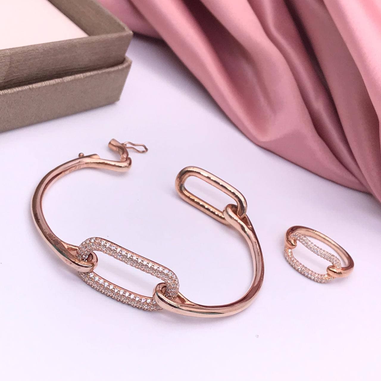 Этот изящный браслет LUX-62389, выполненный в современном стиле, станет эффектным дополнением к вашему образу. Акцент на центральном звене, инкрустированном сверкающими кристаллами, придает изделию особый шарм. Розовое золото создает нежный и женственный вид.