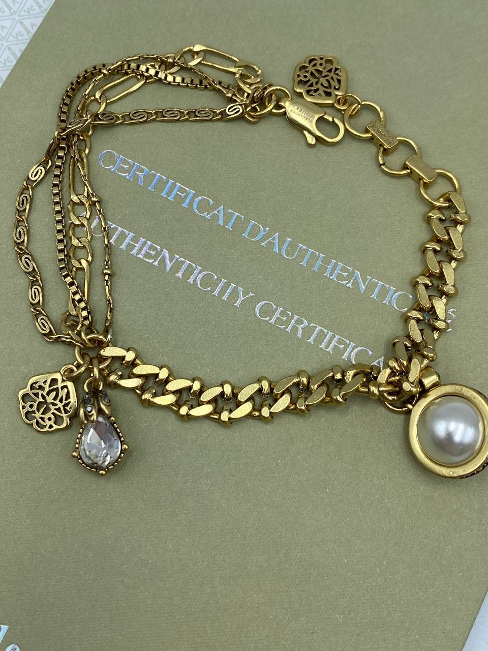 Браслет LUX-91565 — это элегантное украшение, которое станет прекрасным дополнением к вашему образу. Золотистый браслет выполнен в стиле luxury, он сочетает в себе разные типы цепочек и подвесок, которые добавляют ему изысканности и привлекательности. Этот браслет идеально подходит для создания неповторимого стиля и подчеркивания вашей индивидуальности.