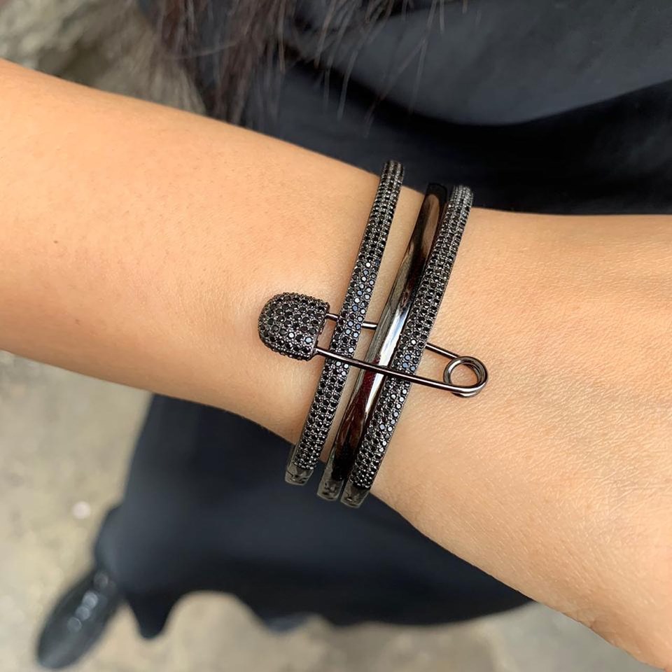 Этот стильный набор браслетов от LUX-CRIME, представленный артикулом LUX-16546, отличается смелым дизайном с акцентом на элемент в виде булавки, инкрустированной мелкими черными кристаллами. Три браслета, включая один более массивный, украшенный россыпью кристаллов, и два гладких, создают многослойный и эффектный образ. Этот аксессуар призван добавить вашему стилю дерзости и индивидуальности, идеально подойдя как для повседневных, так и для вечерних нарядов.